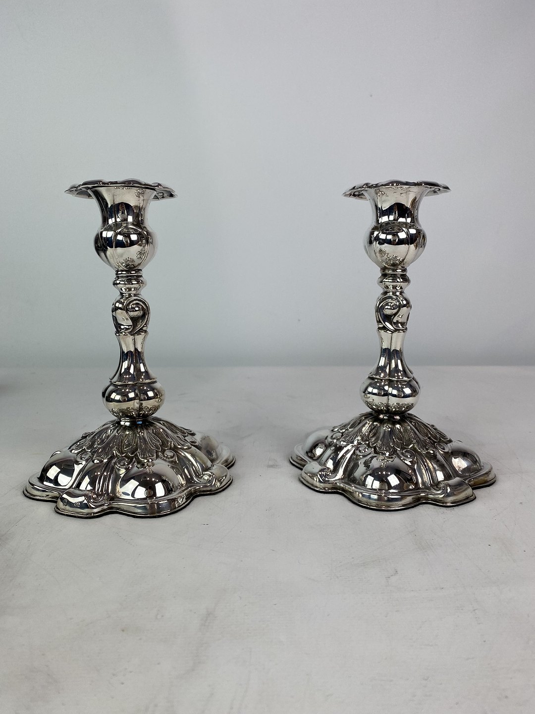 Set of two rococo candlesticks of hallmarked silver, in great antique condition from the 1920s.