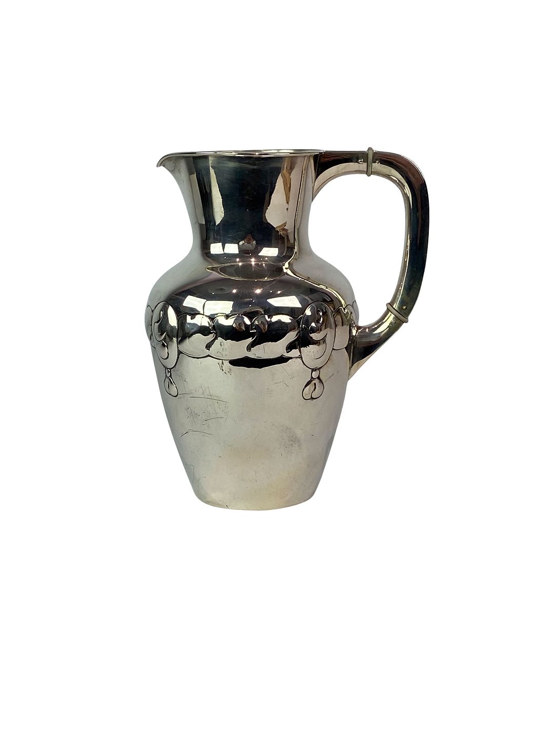 Vandkande i jugendstil af tretårnet sølv stemplet Augusta H., fra 1930erne. Kanden er i flot antik stand.