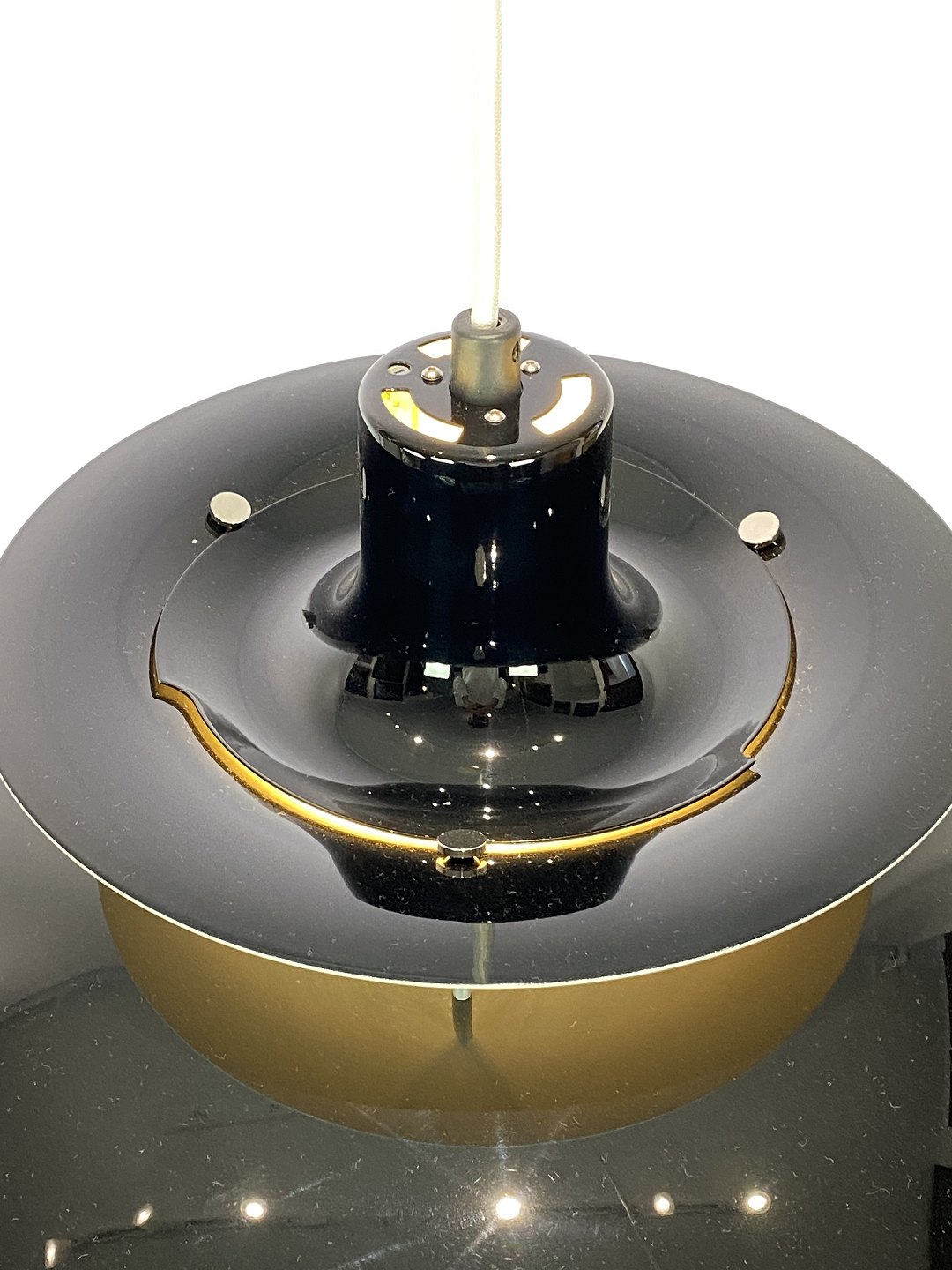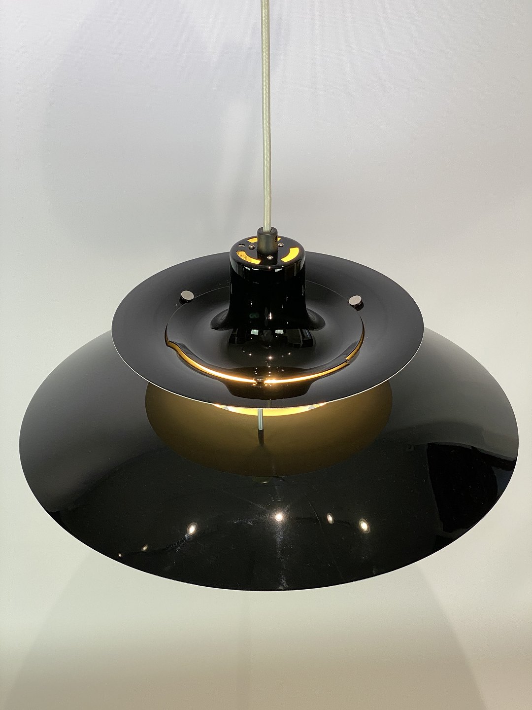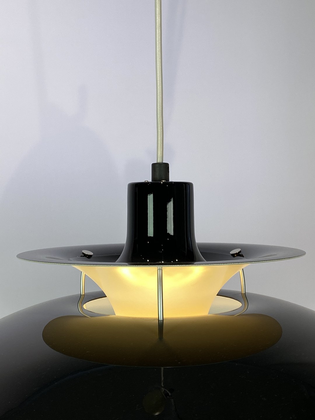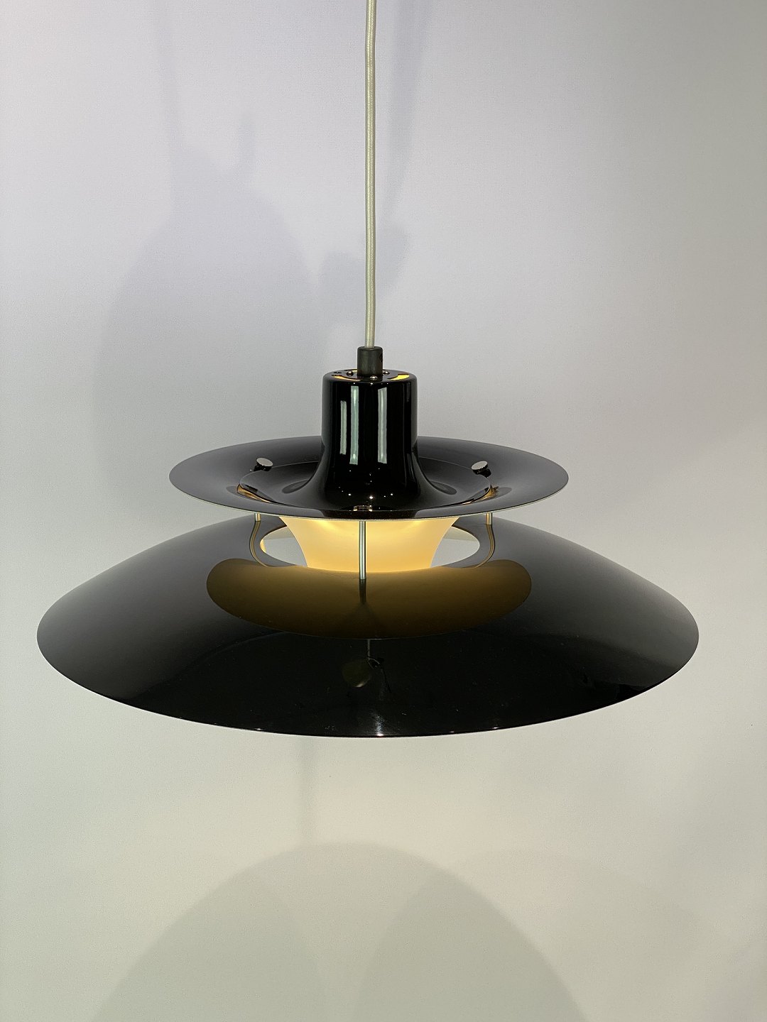 PH5 lamp designed by Poul Henningsen in 1958 and manufactured by Louis Poulsen. The lamp has lacquered metal shades in black, red and white, as well as being a newer model.