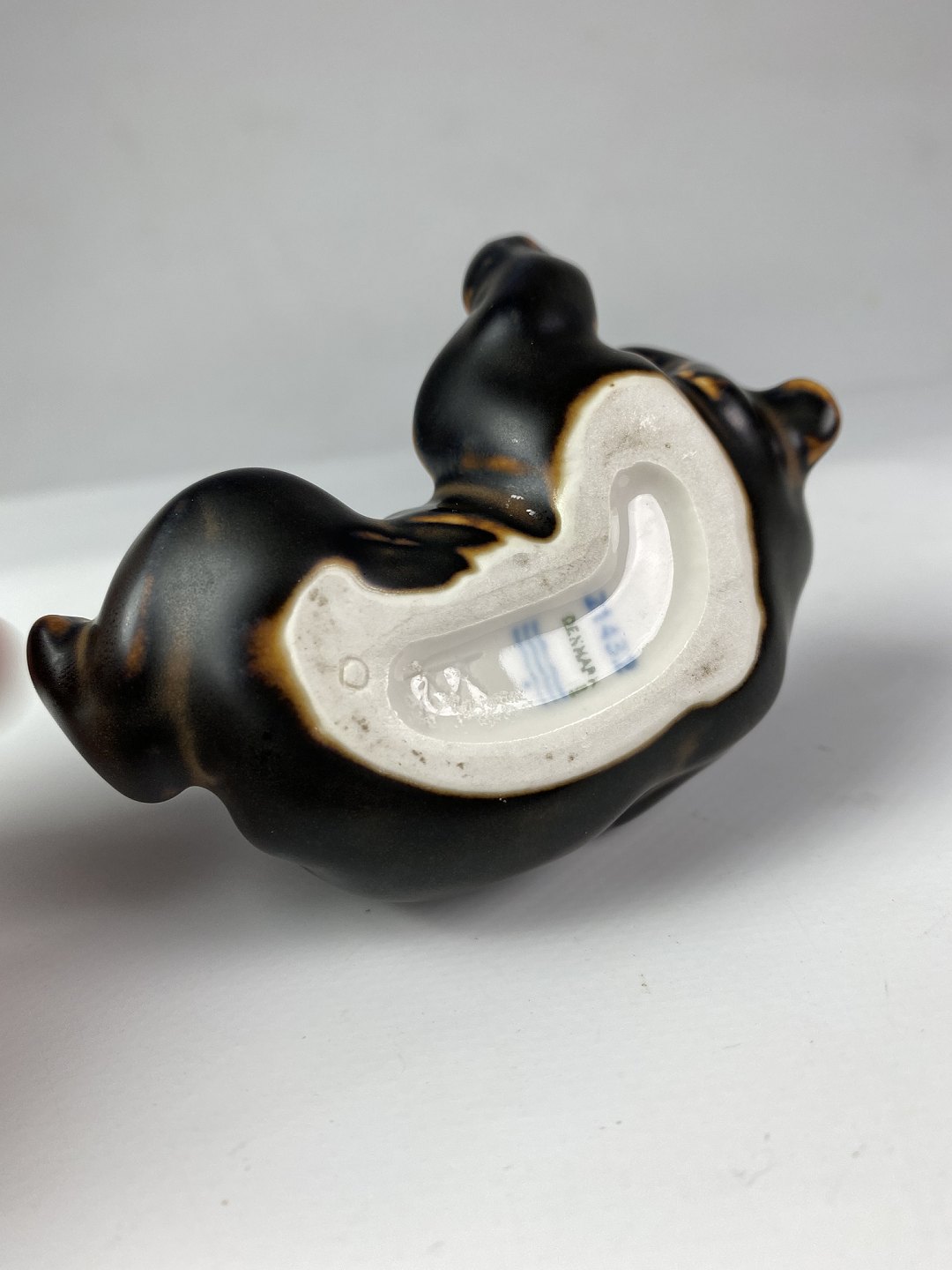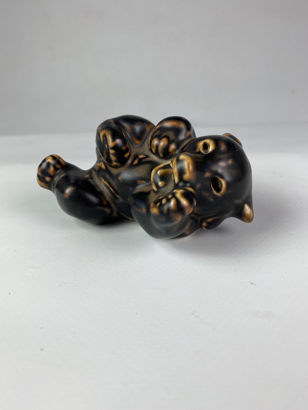 Royal porcelain figurine reclining bear, no.: 21432 by Knud Kyhn.