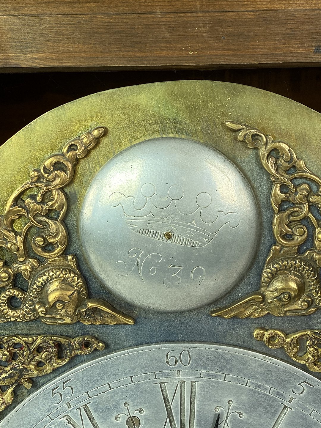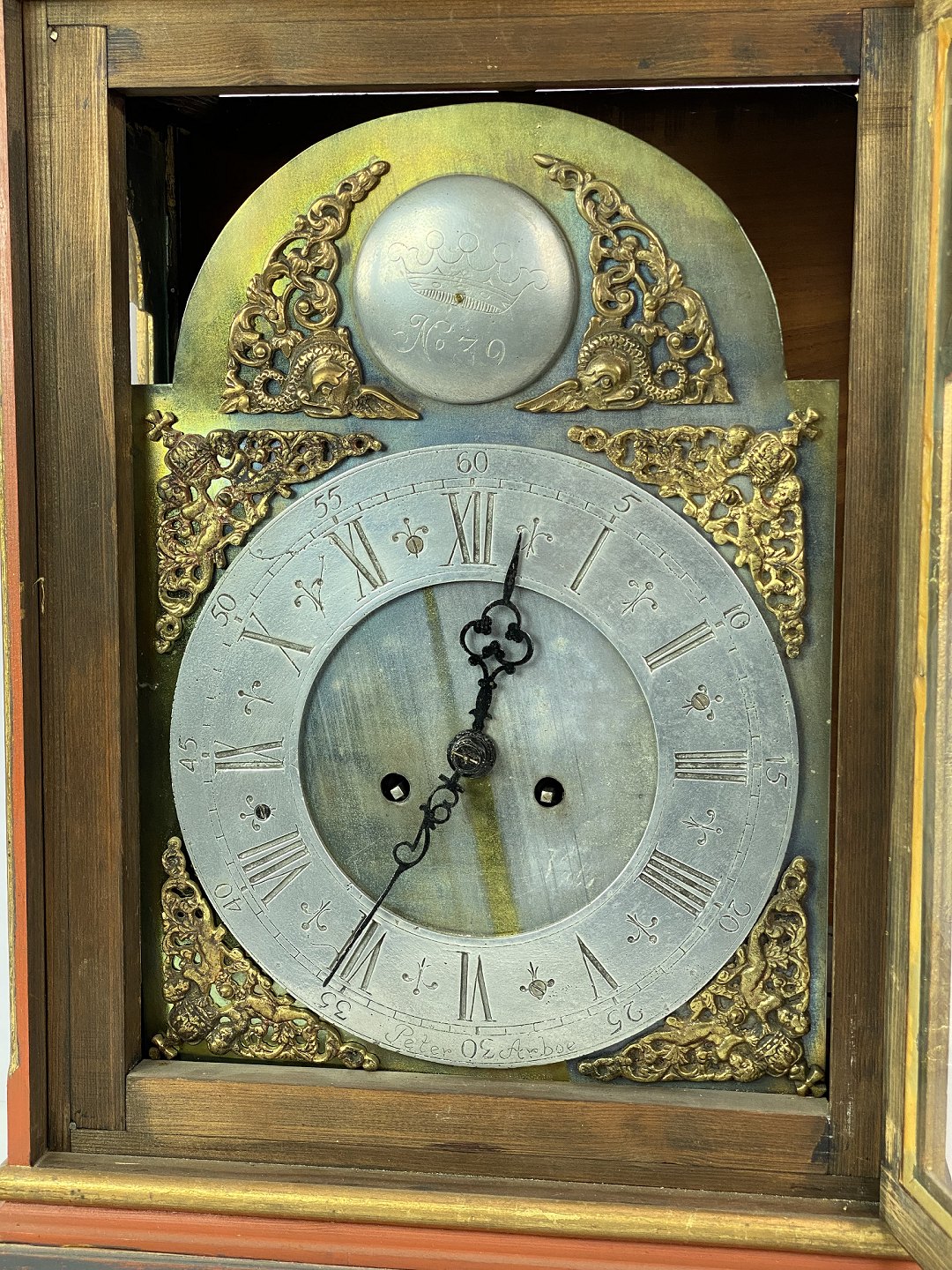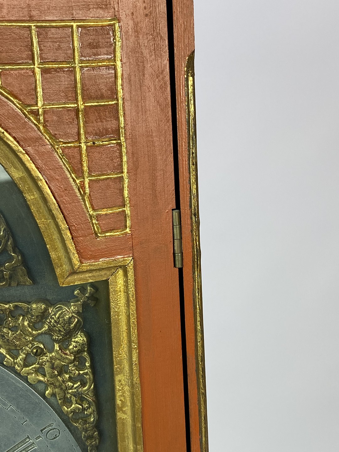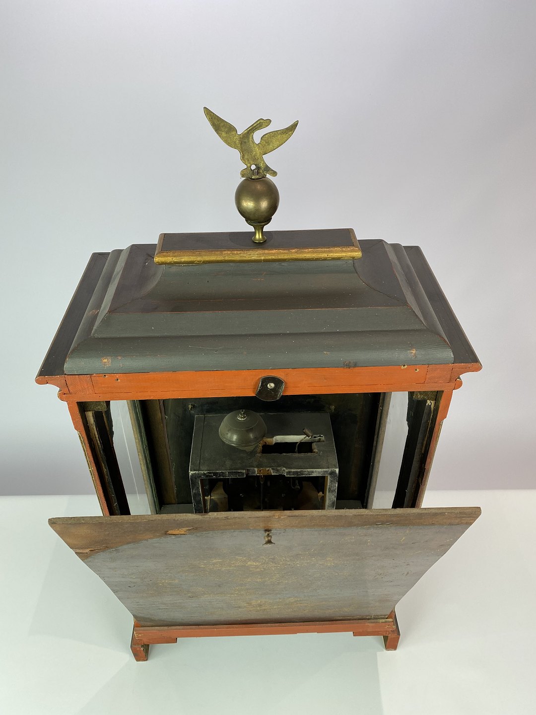 SoldFireplace clock painted and of brass, as well as decorated with figurine of brass, from around 1860. The dial is of brass and tin.