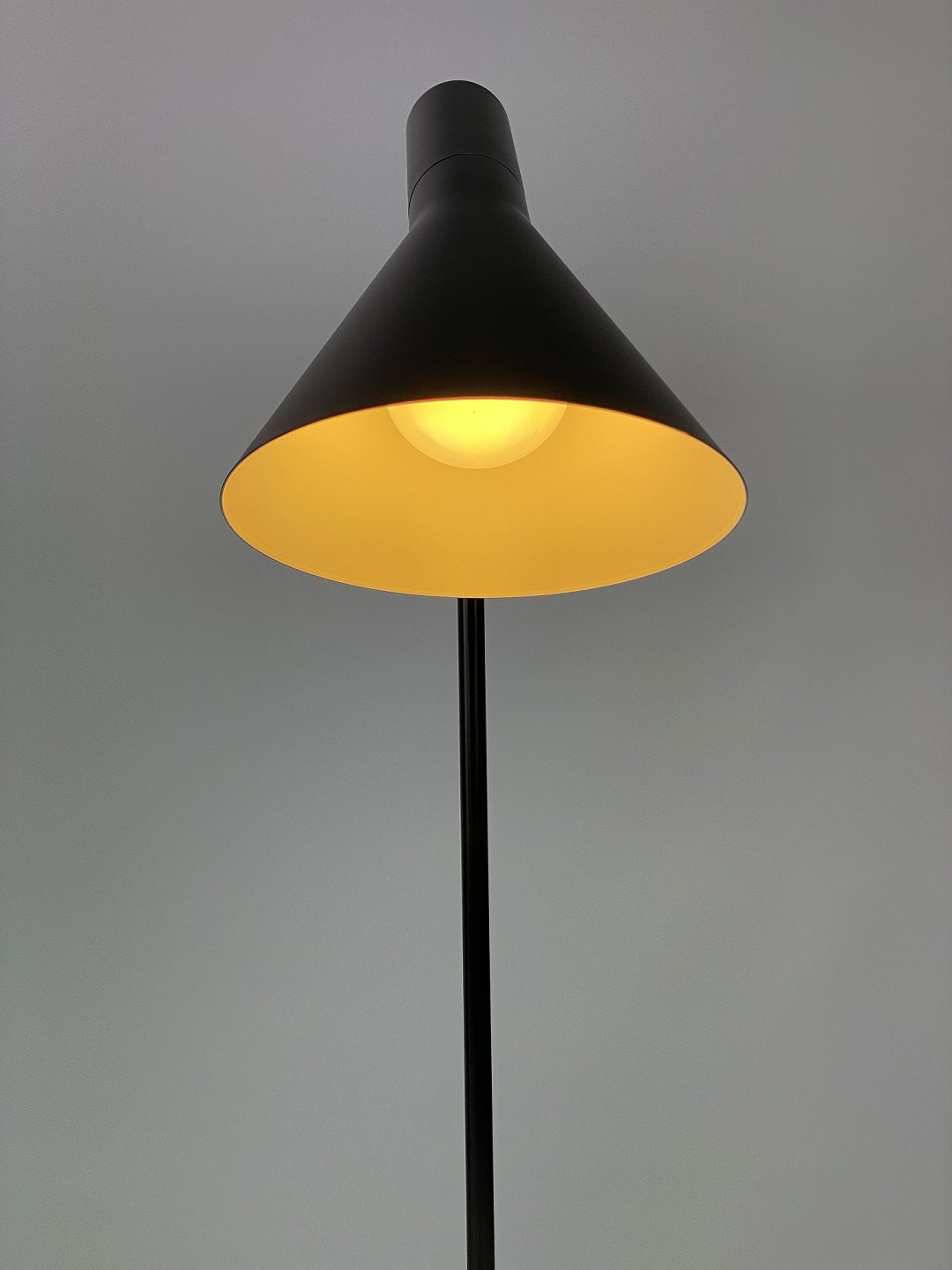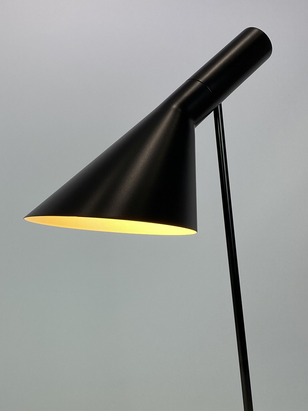 Black table lamp designed by Arne Jacobsen and manufactured by Louis Poulsen.