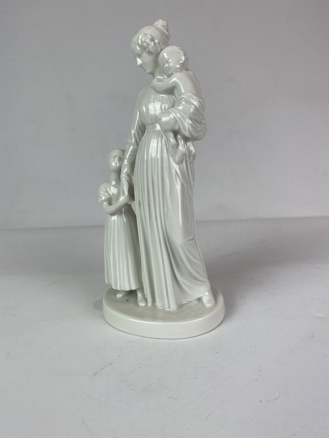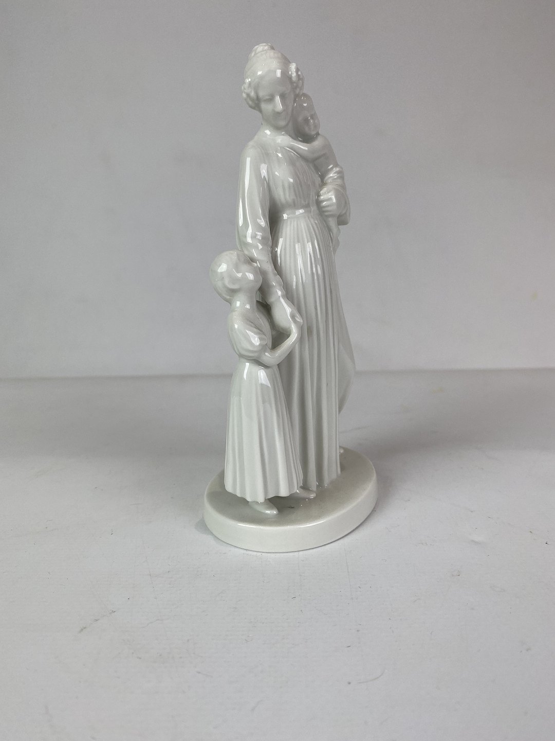 Kgl. hvid porcelænsfigur, dame med to børn.