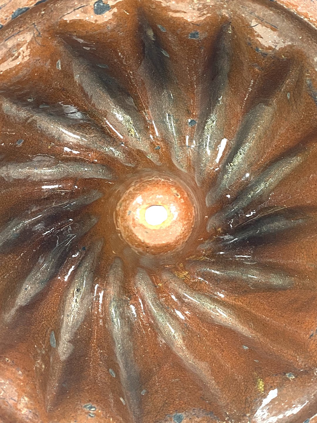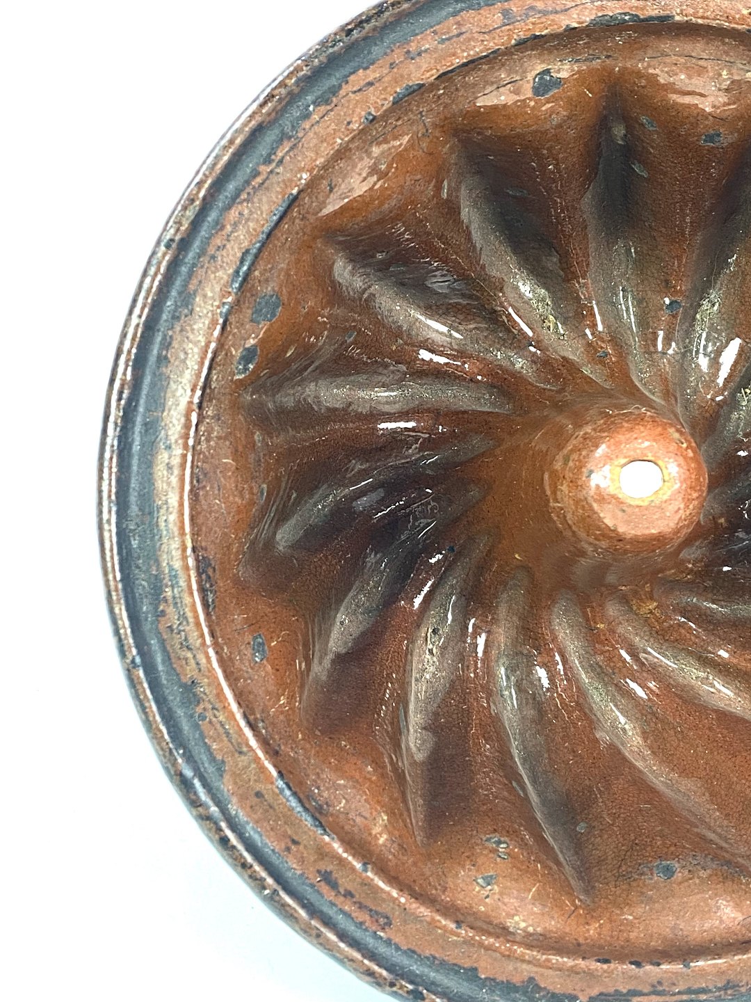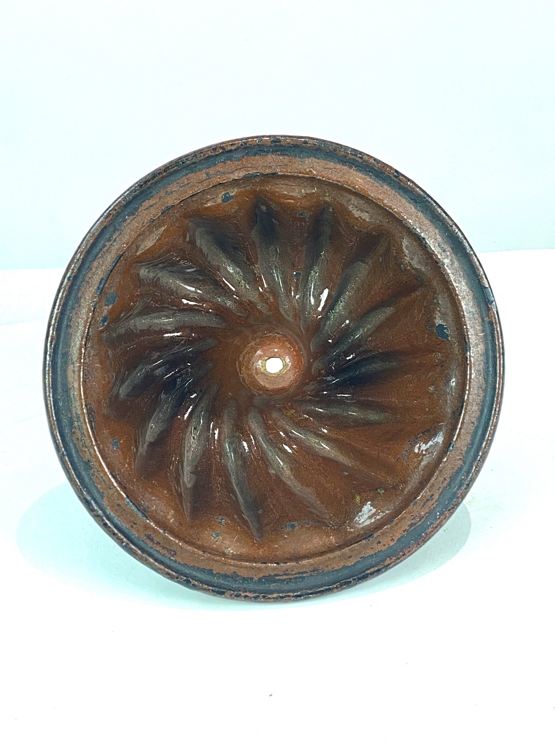 Keramik buddingeform i brune farver fra omkring 1930erne. Formen er i flot antik stand.