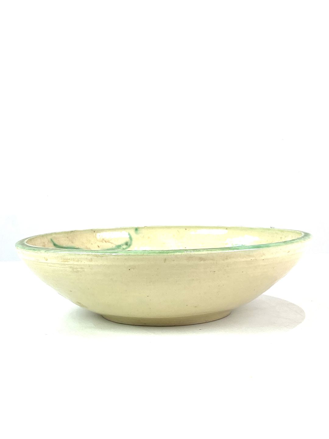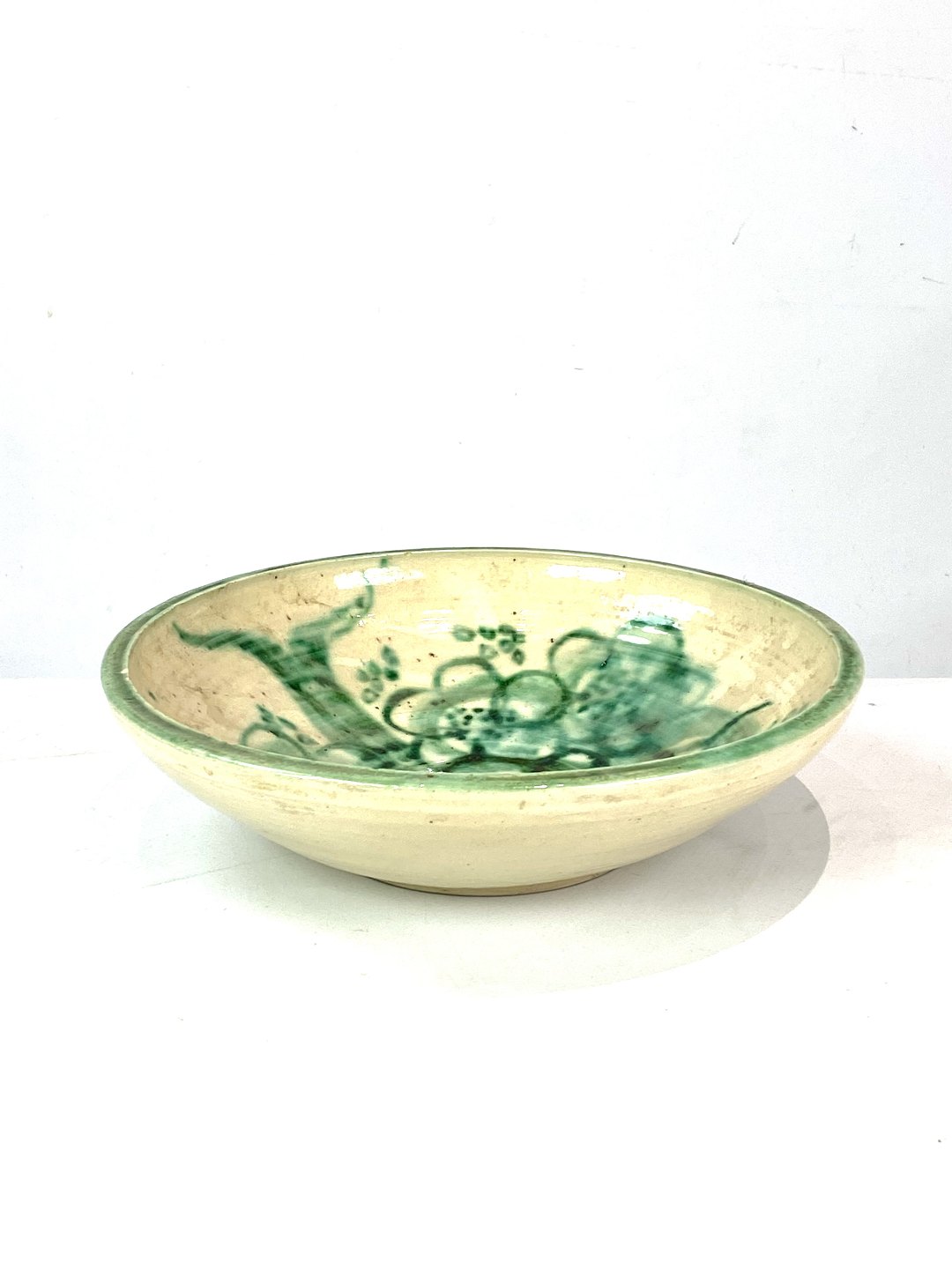 SoldCeramic dish with light glaze and decorated with green pattern, from the 1940s and signed H.