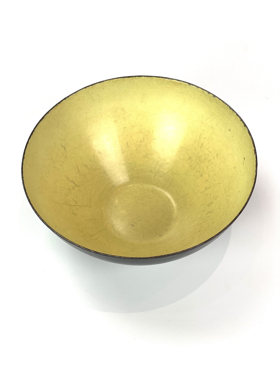 SolgtKrenit skål af Herbert Krenchel af sort metal med lysegrøn og gul emalje fra 1960erne. Skålen er af dansk design og i flot brugt stand.