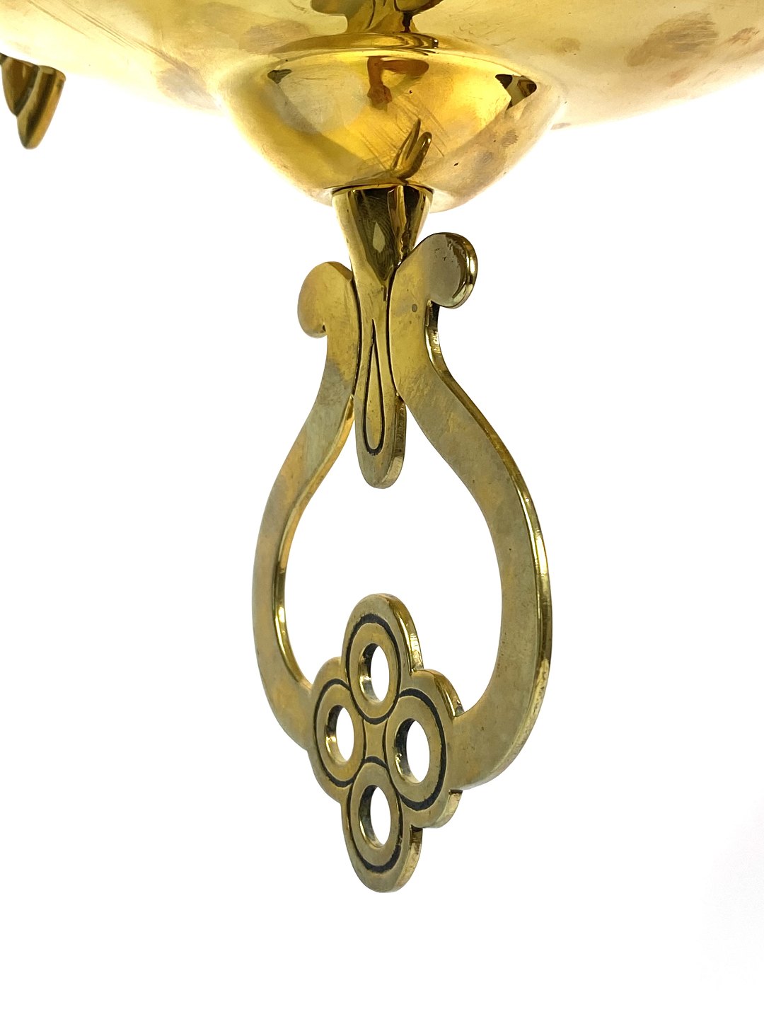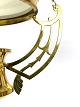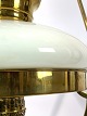 SolgtHængelampe til petroleum i messing og med skærm af opal glas af Jugend stil fra omkring 1920erne. Lampen er i flot antik stand.