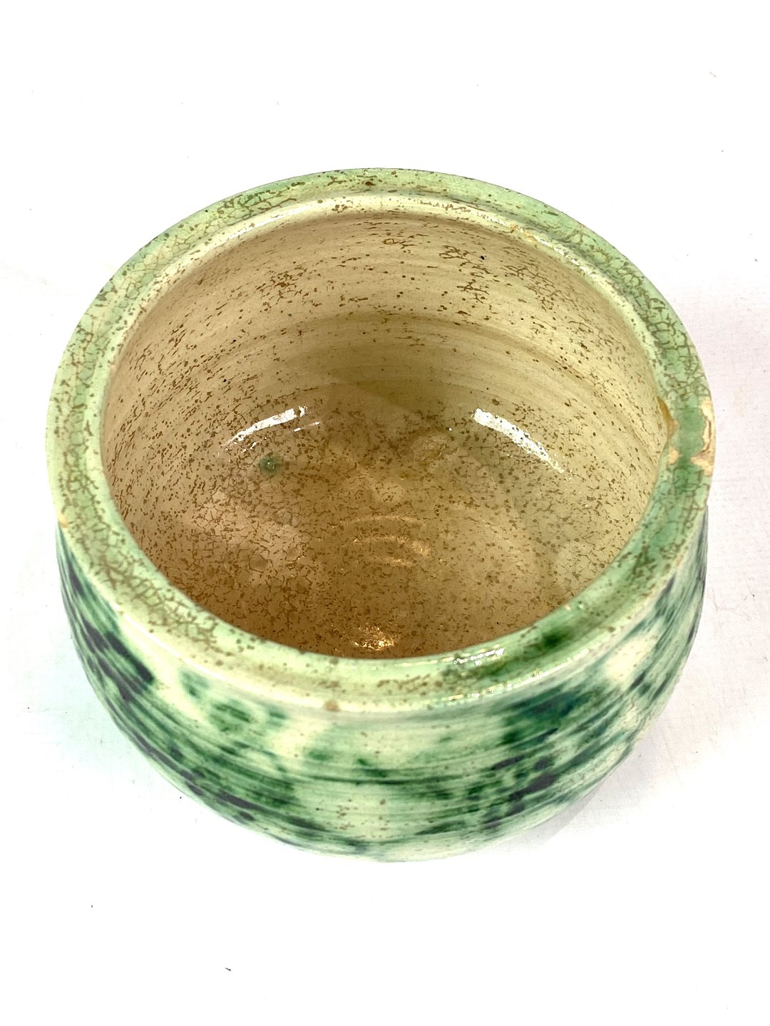 Ceramic bowl with light glaze and green pattern from the 1940s.