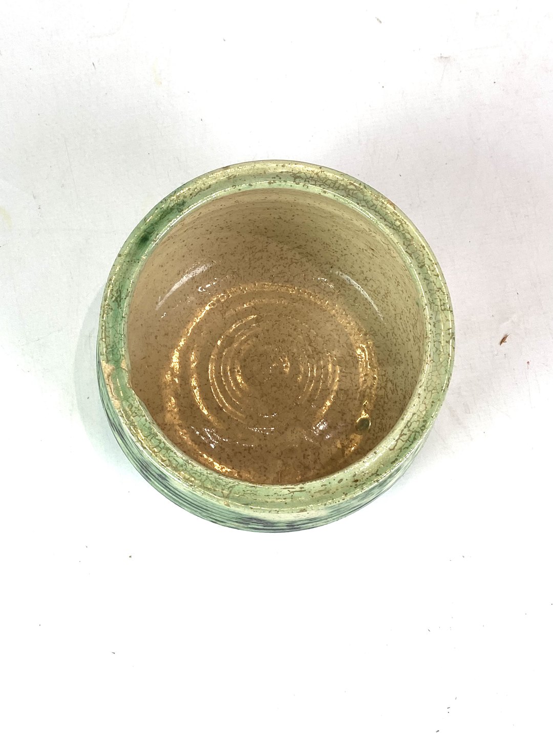 Ceramic bowl with light glaze and green pattern from the 1940s. The bowl is in great vintage condition.