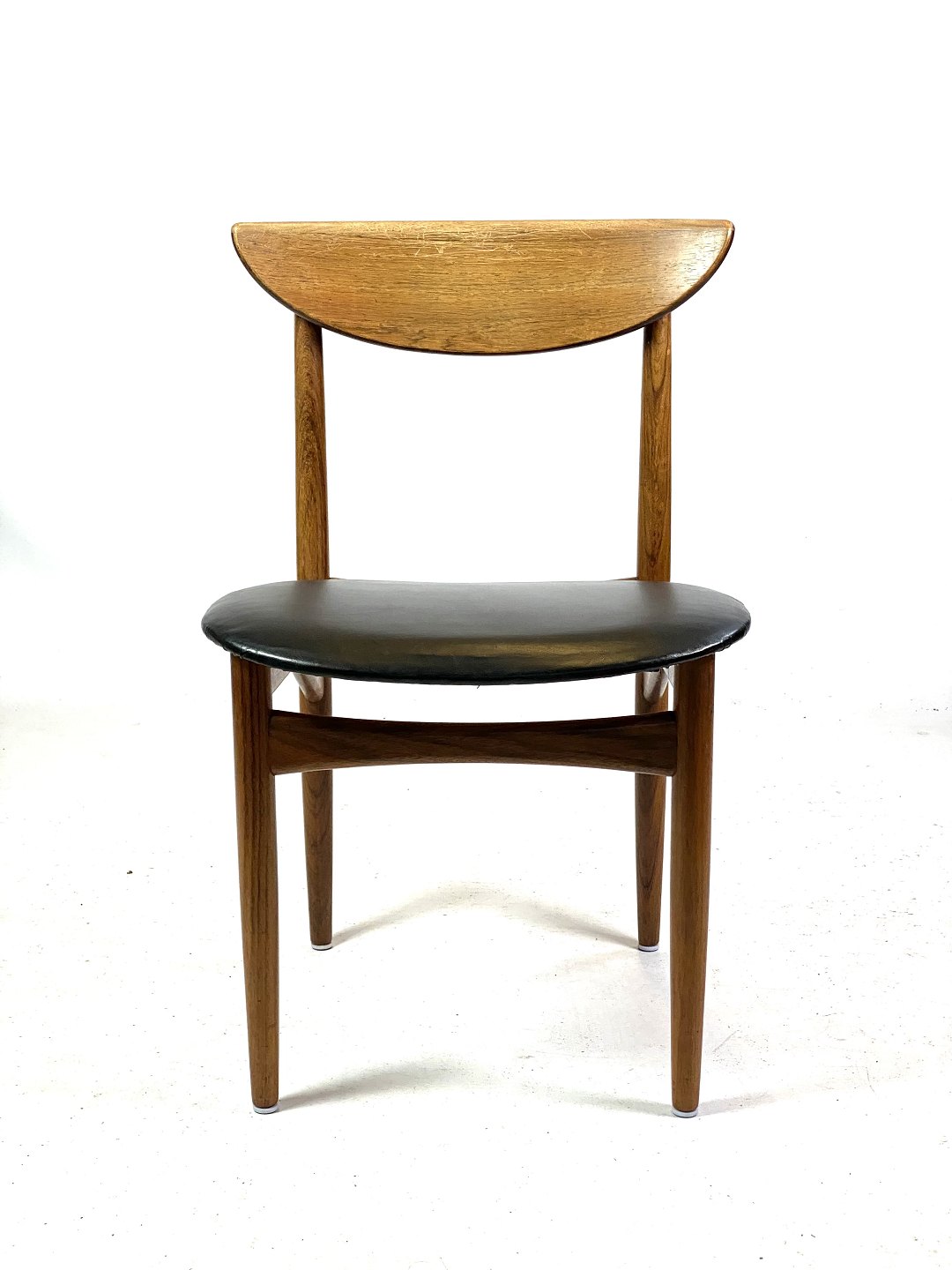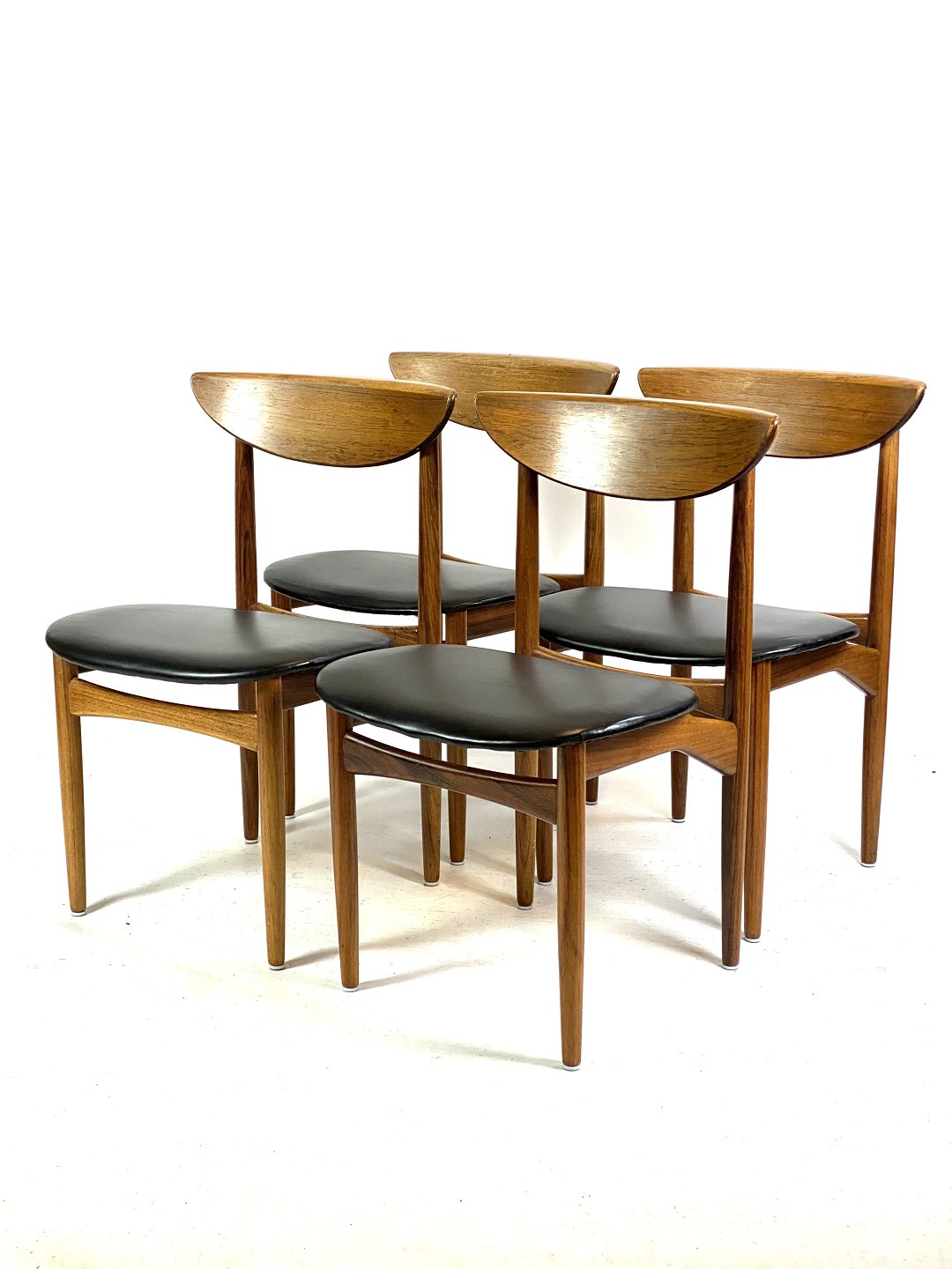 Four dining room chairs in rosewood and upholstered with black leather of Danish design from the 1960s.