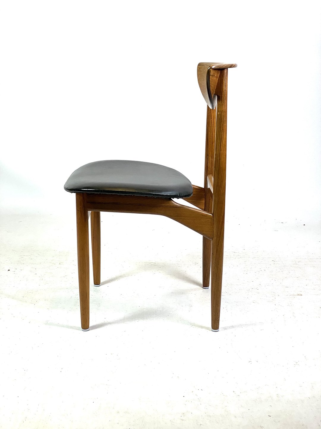 Four dining room chairs in rosewood and upholstered with black leather of Danish design from the 1960s. The chairs are in great vintage condition.