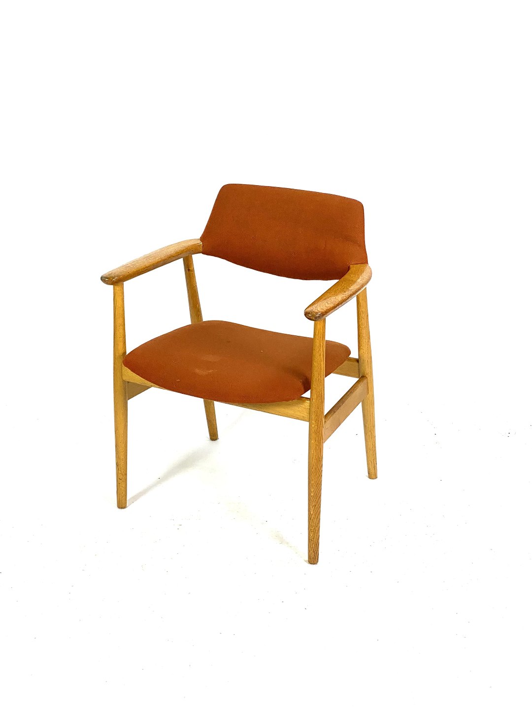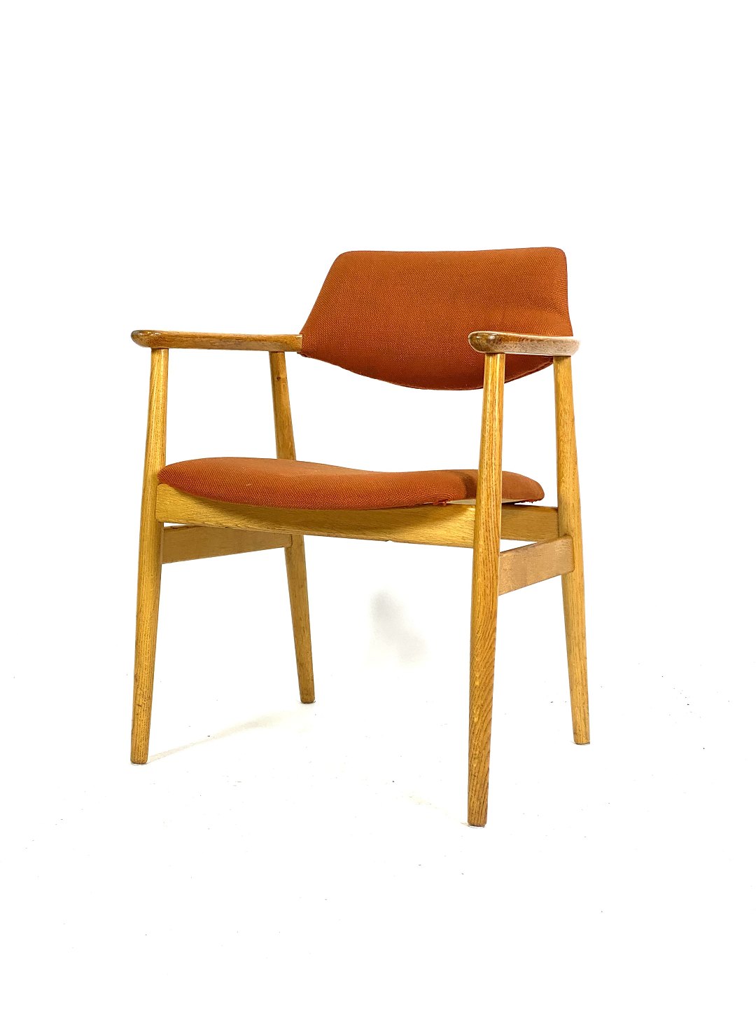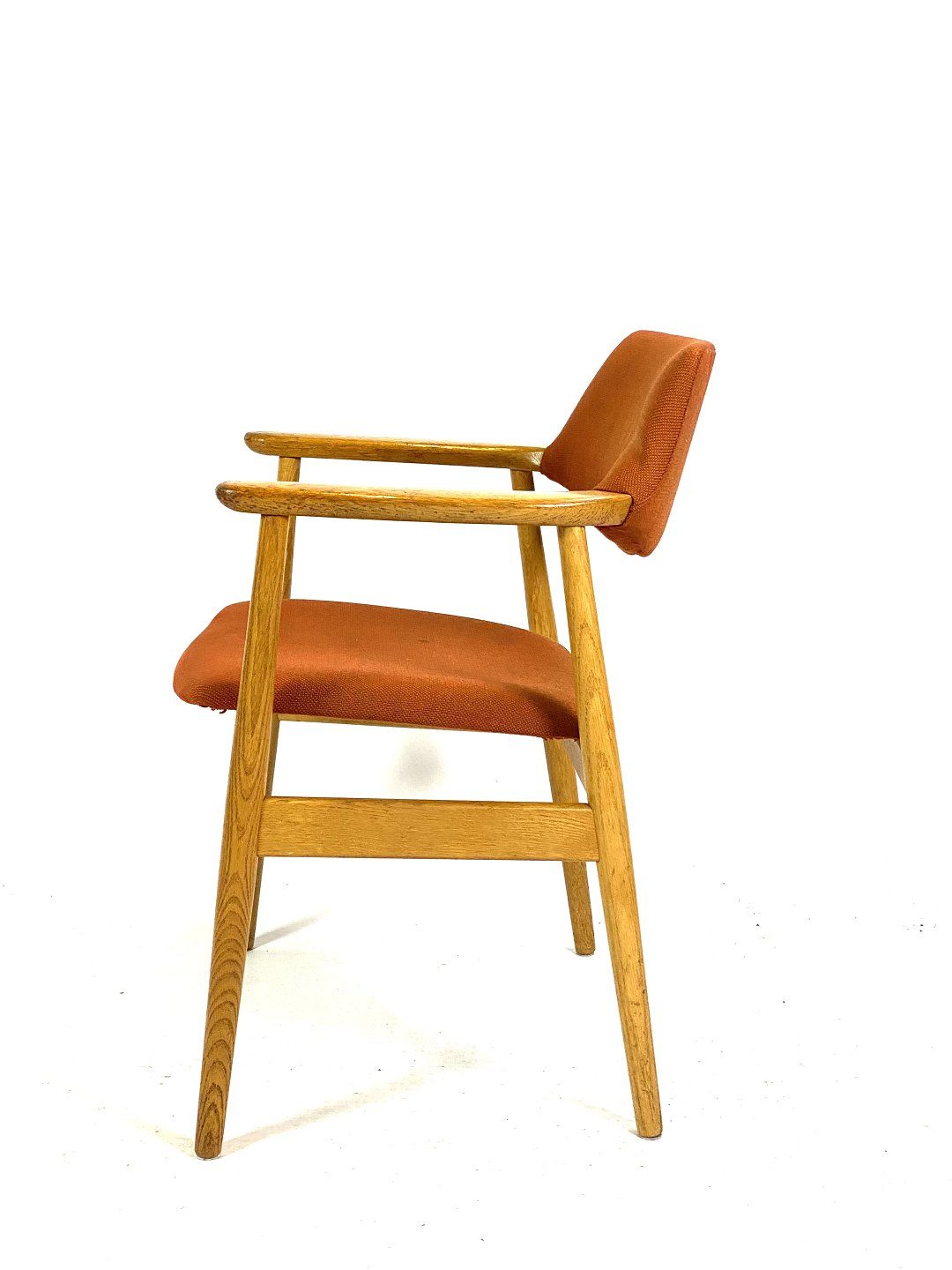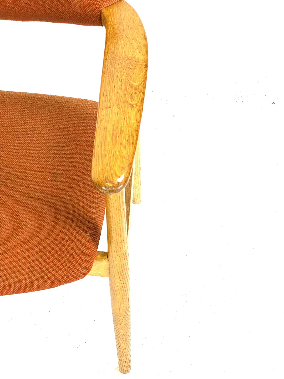 SolgtSeks armstole i eg og polstret med orange uldstof designet af Erik Kirkegaard fra 1960erne. Stolene er i flot brugt stand.