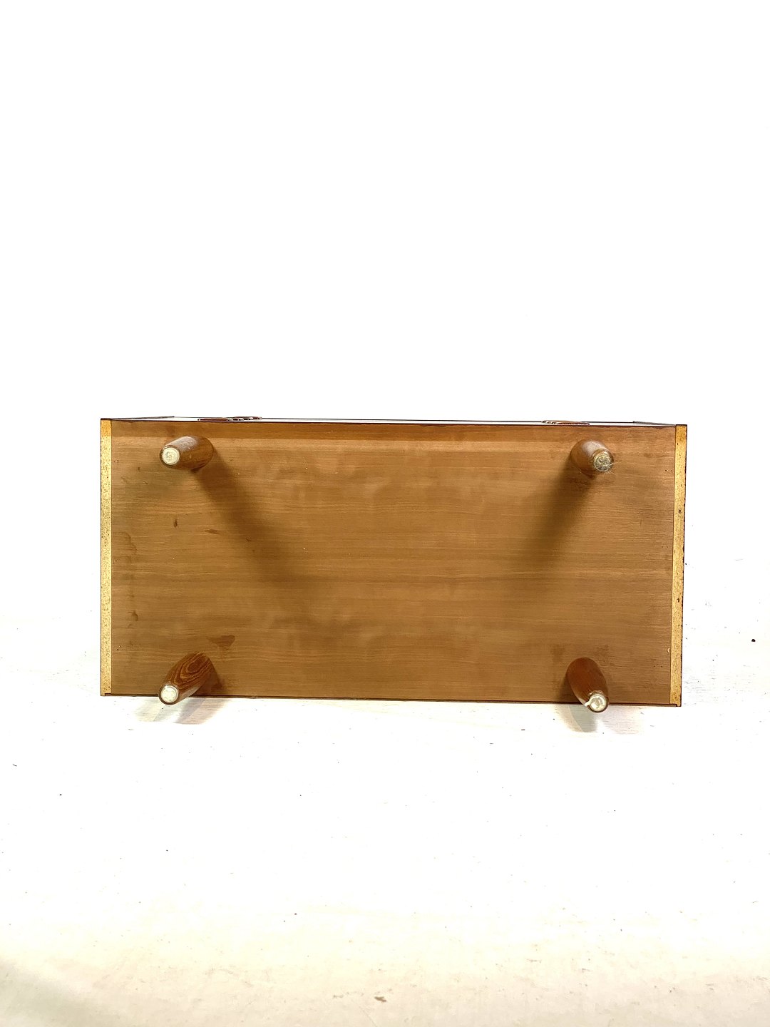 I flot brugt stand viser kommoden stadig sin skønhed og funktionalitet efter årtier med brug. Med sine rene linjer og smukke træmønster er denne kommode en klassiker, der vil tilføre charme og karakter til enhver indretning.