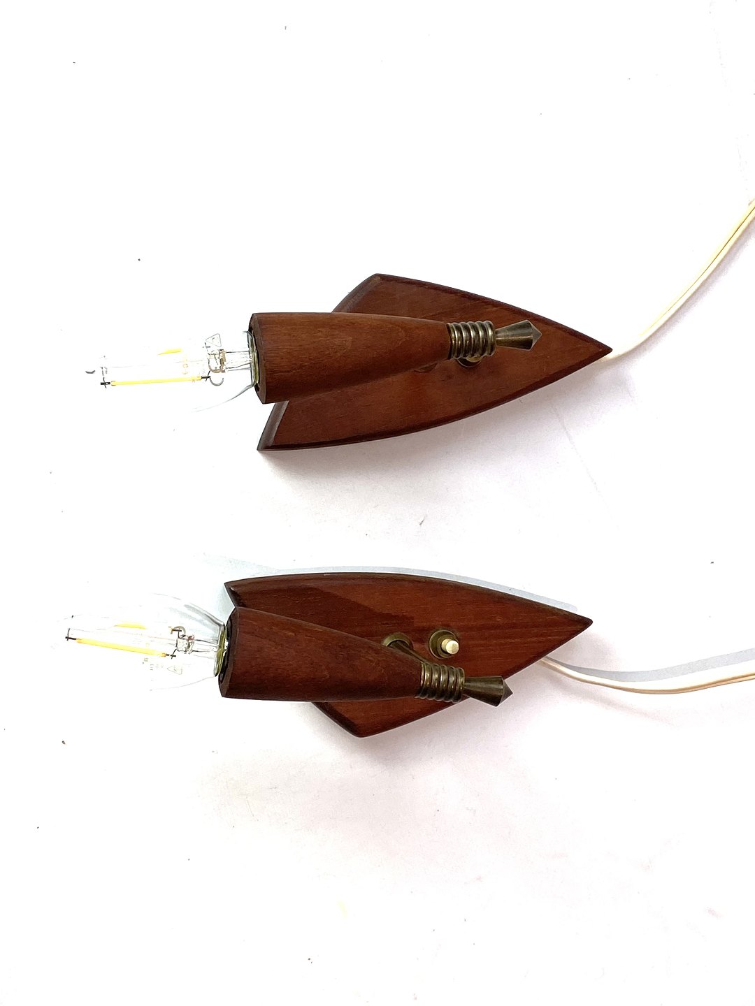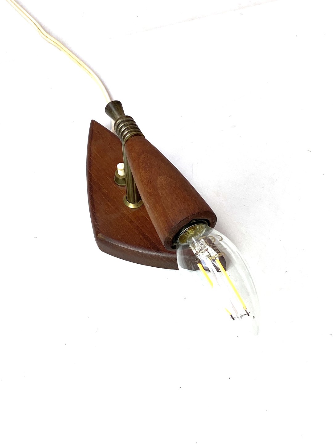 SoldWall mounted lamps in teak and brass of Danish design from the 1960s. The lamps are in great vintage condition.