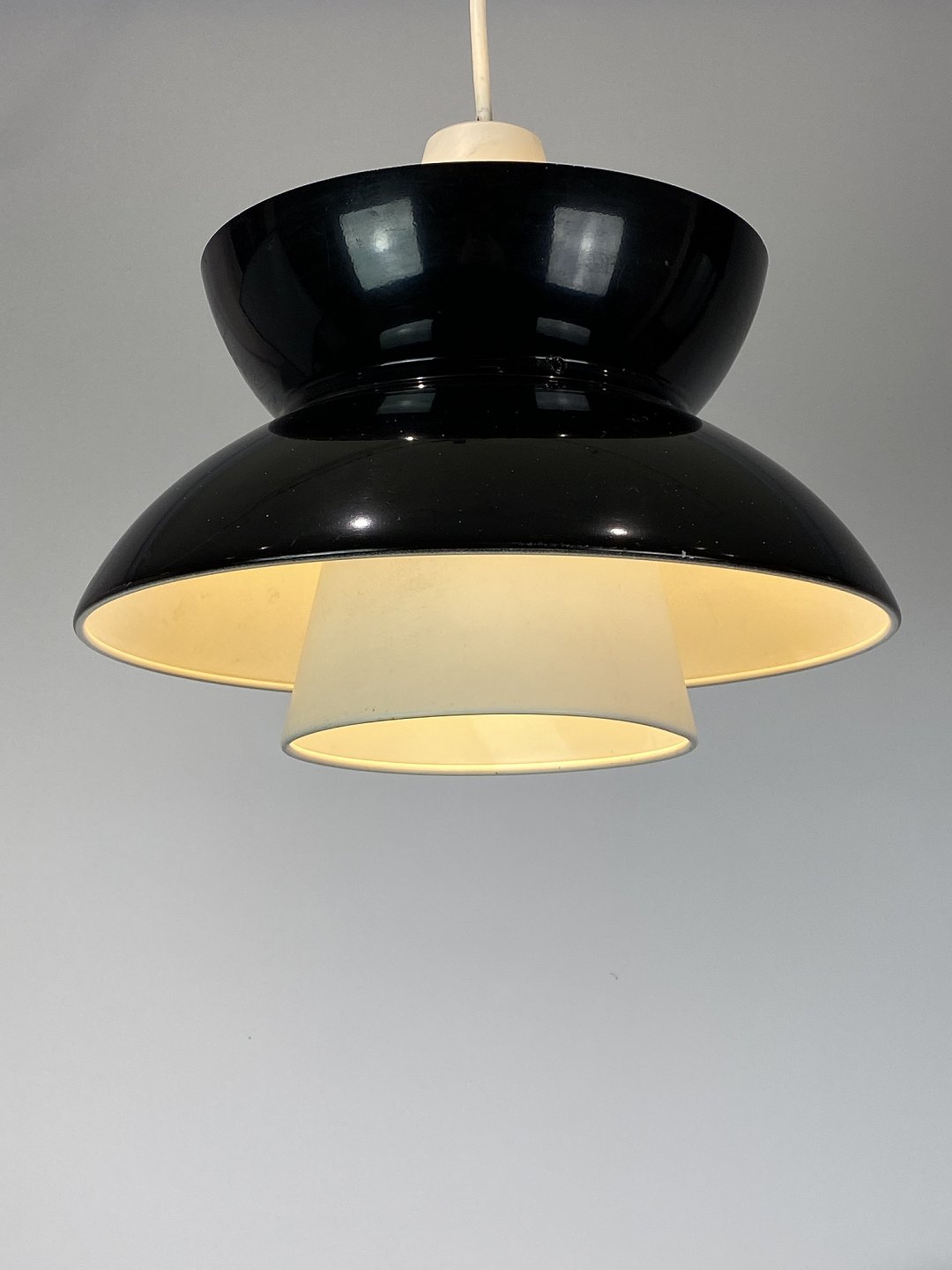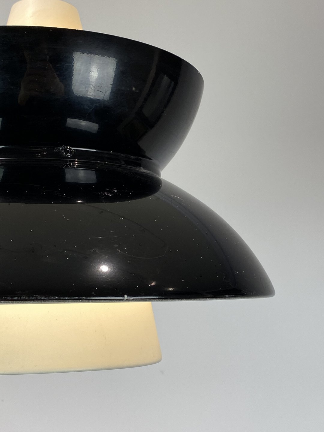 Sold"Søværns" pendant in black and white designed by Jørn Utzon and manufactured by Louis Poulsen in the 1960s. The lamp is in great vintage condition.