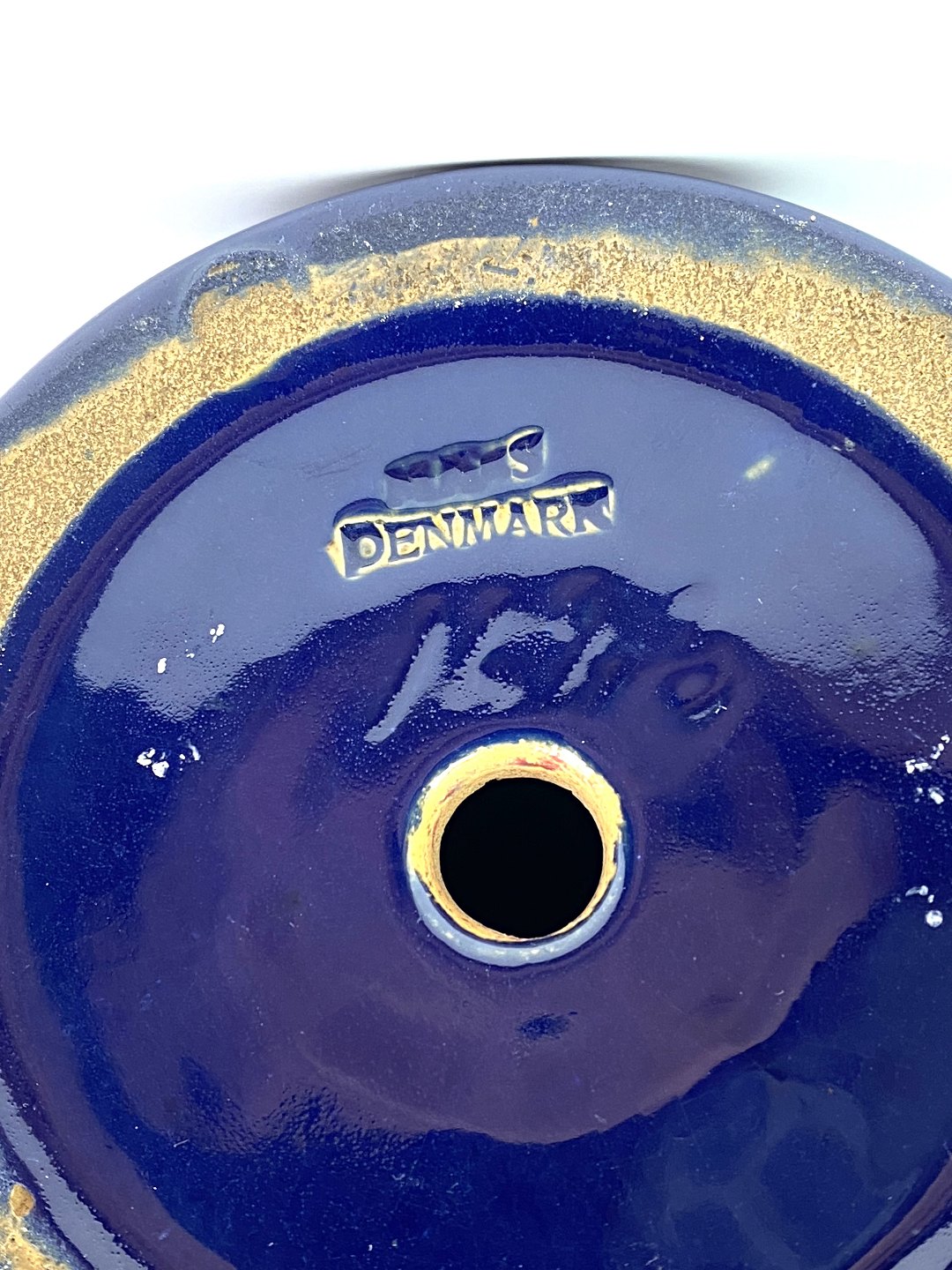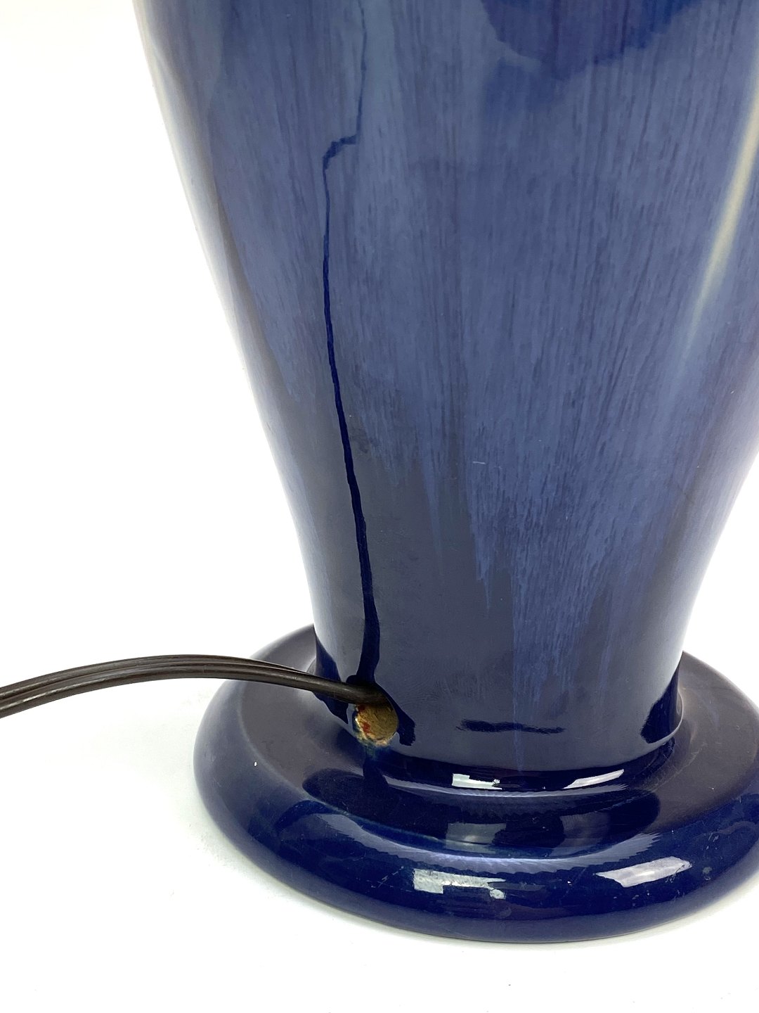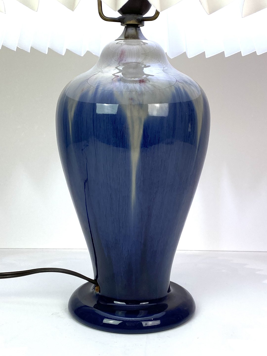 Ceramic table lamp with blue glaze and paper shade, by Michael Andersen.