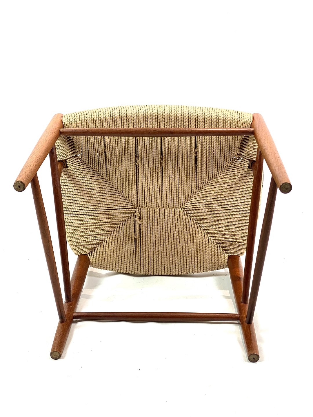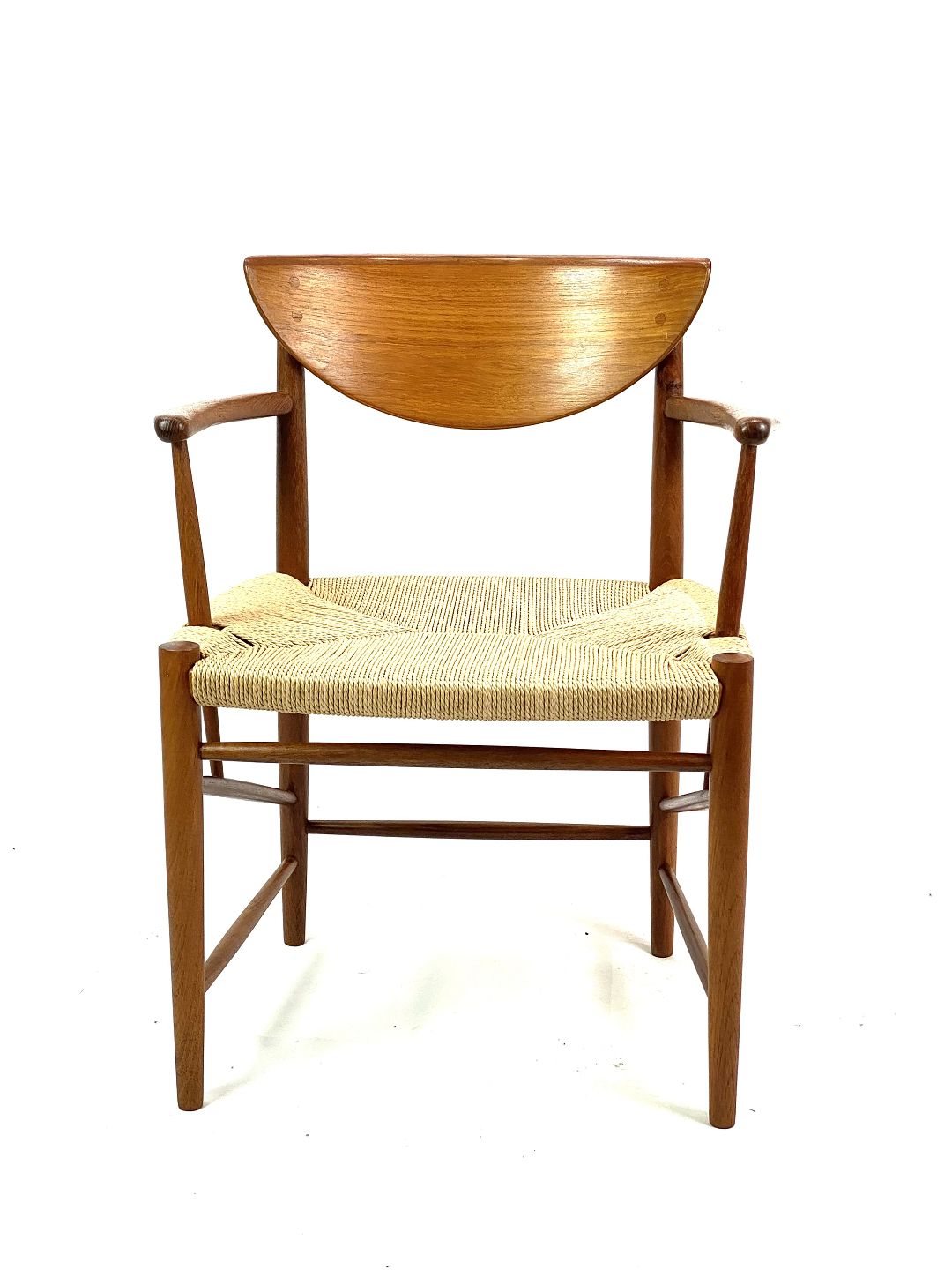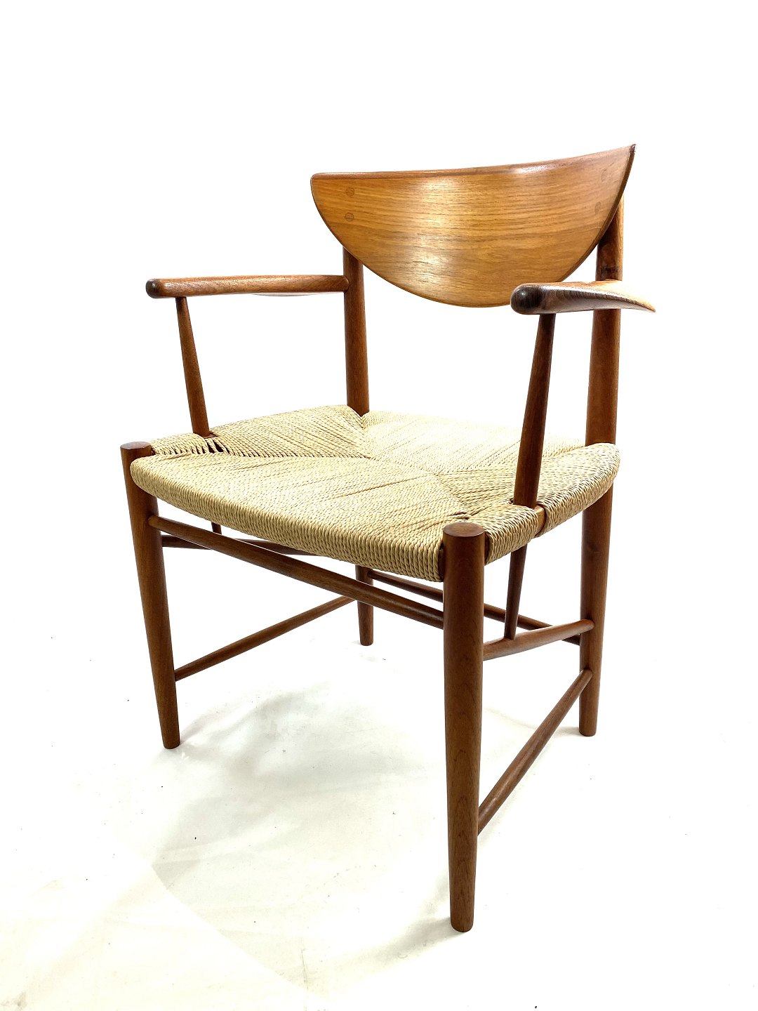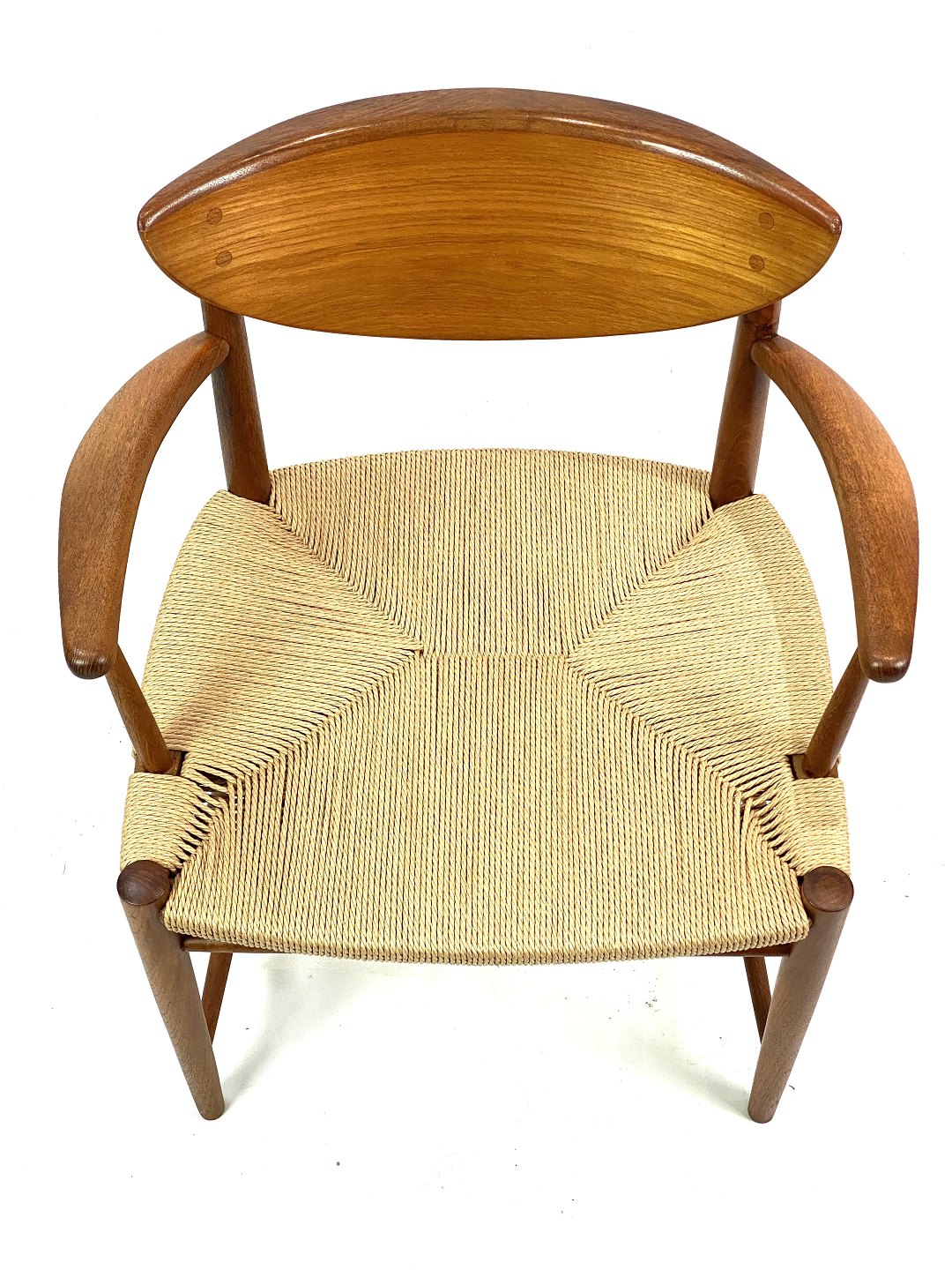 SolgtArmstol, model 317, designet af Hvidt og Mølgaard og fremstillet af Søborg Møbelfabrik i 1958. Stolen er af teak med fletsæde.