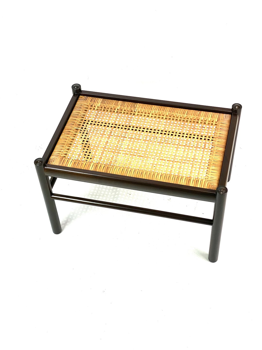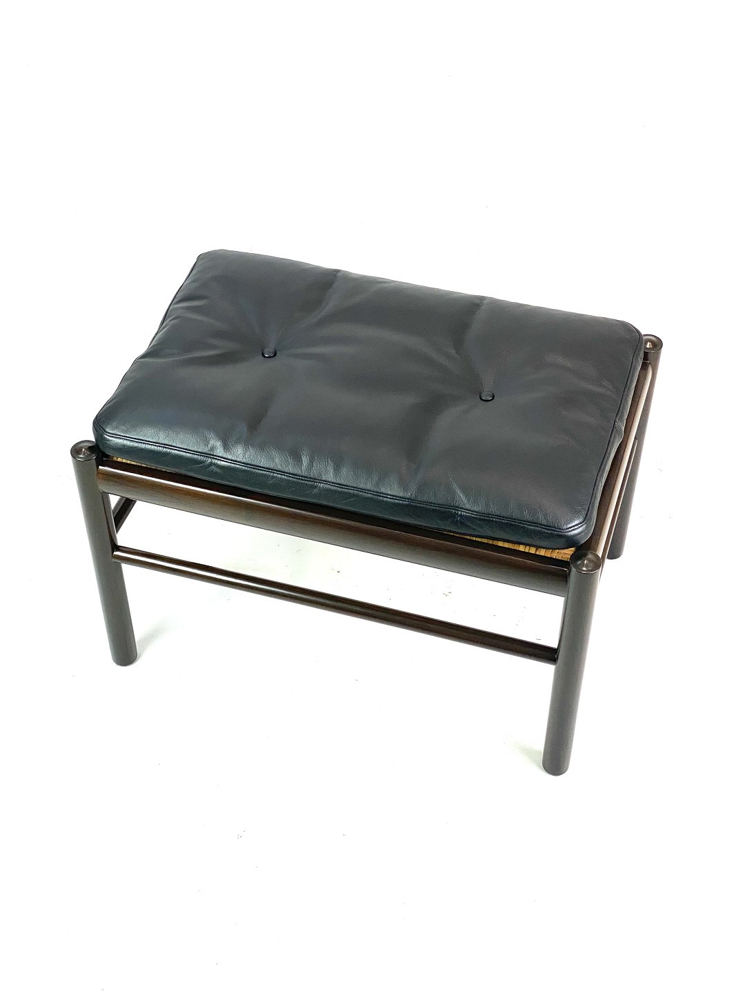 SoldColonial stool designed by Ole Wanscher and manufactured by P. Jeppesen. The stool of rosewood and black leather.