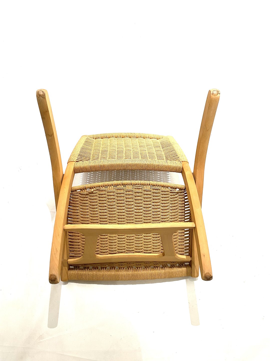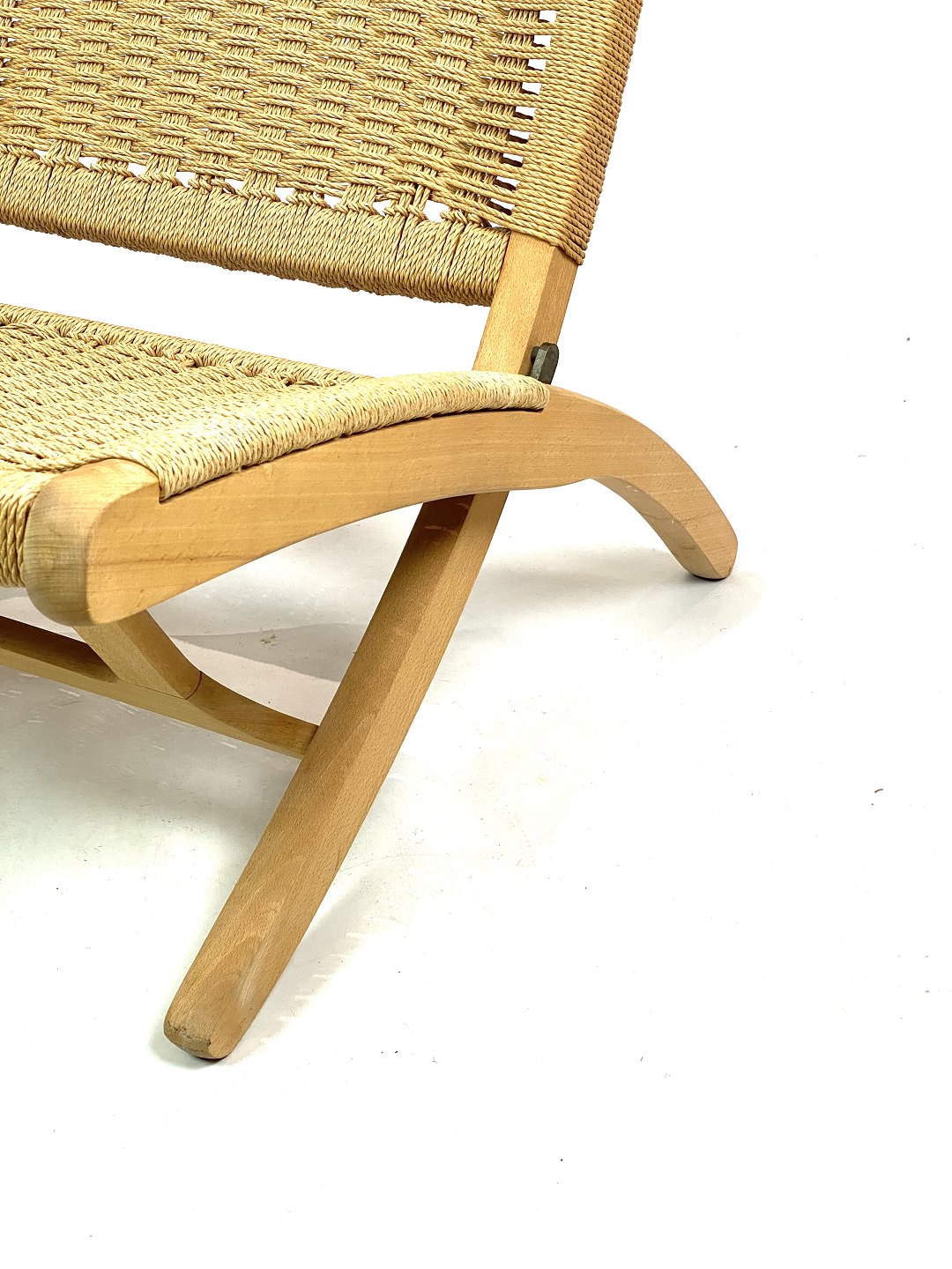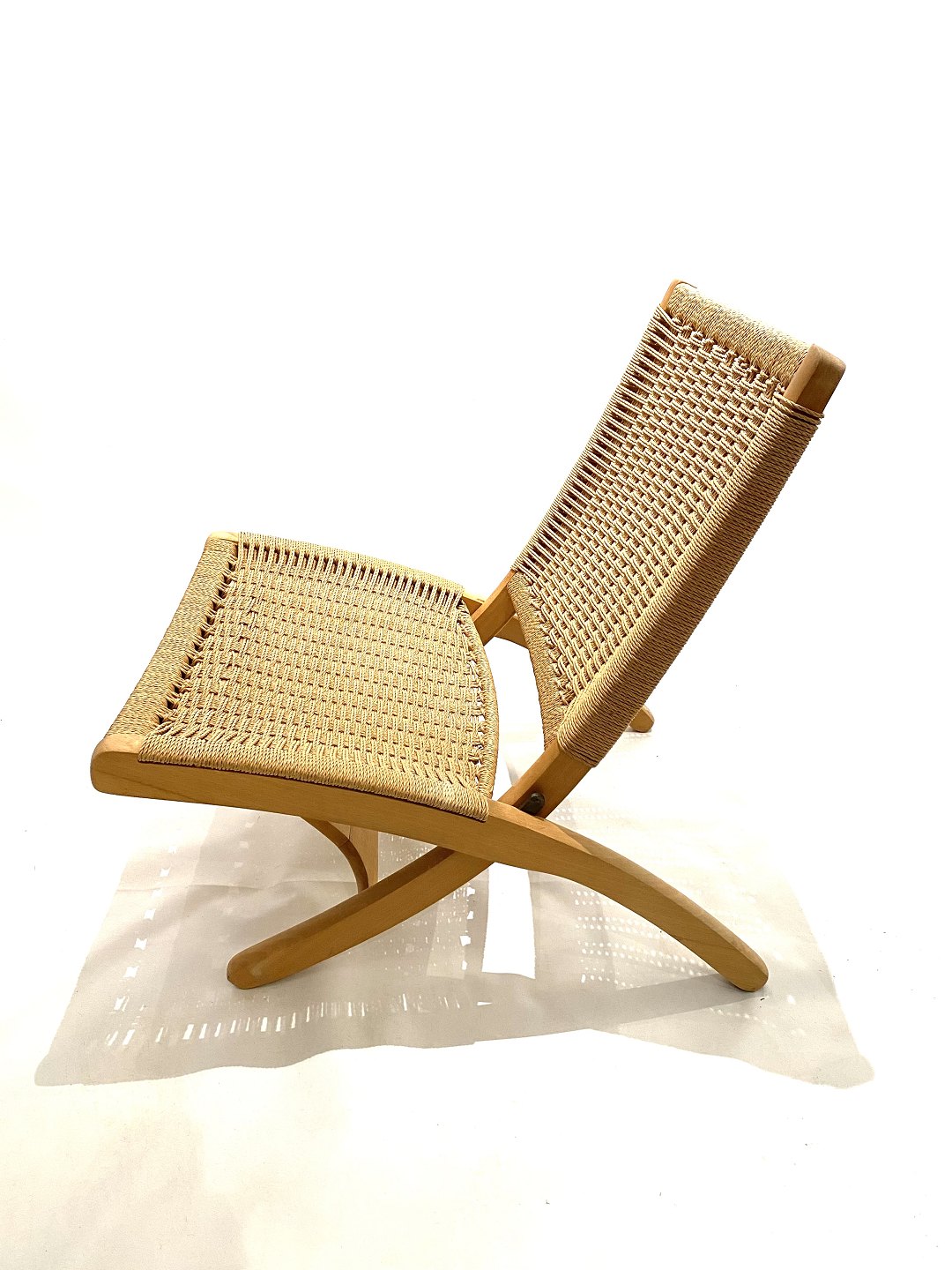 SoldIn the style of Hans Wegner, this fine cord/rope folding lounge chair exhibits remarkable craftsmanship, precisely organic form with original woven seat and back. The beautifully angled form is remarkably comfortable which is complemented by the thick cording. The sleek low profile is perfect for relaxation and would add an element of elegance to any room.