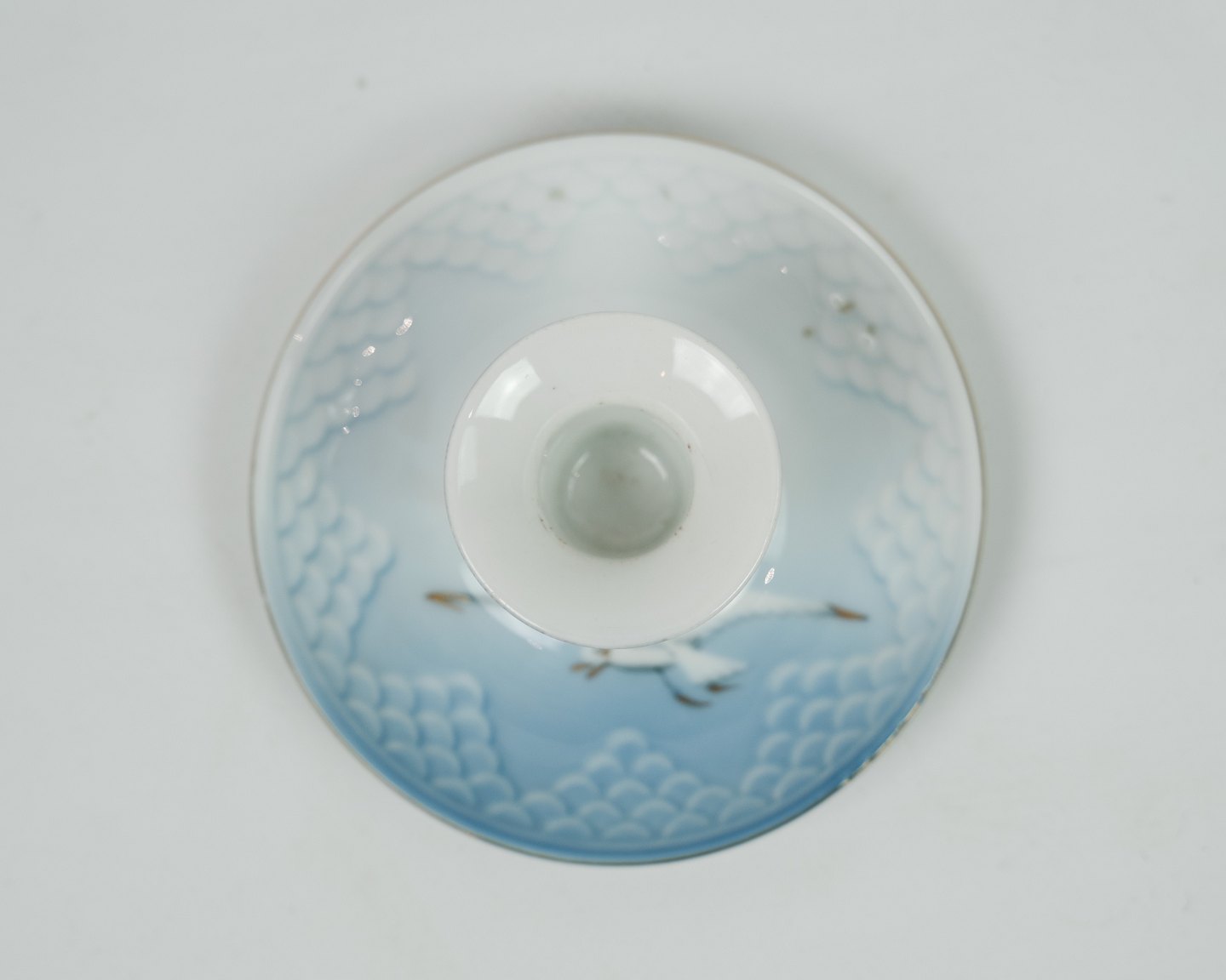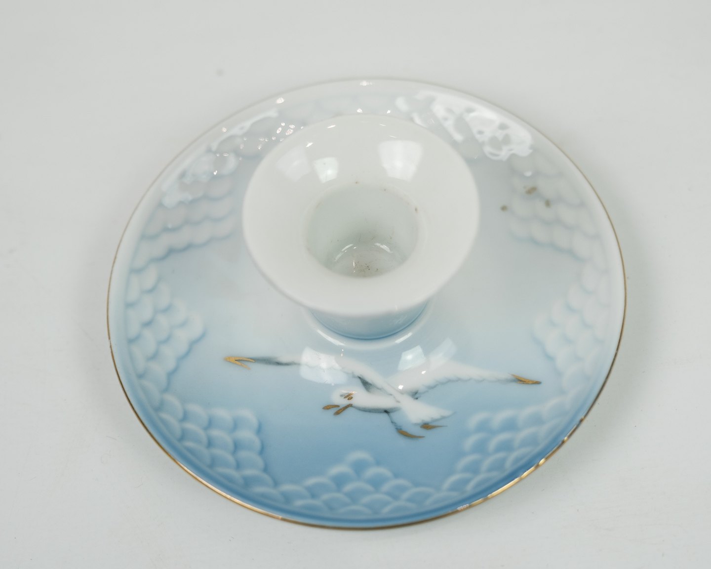 Lysestage fra Bing & Grøndahl i mågestel. Står i meget fin stand med guldkant.
