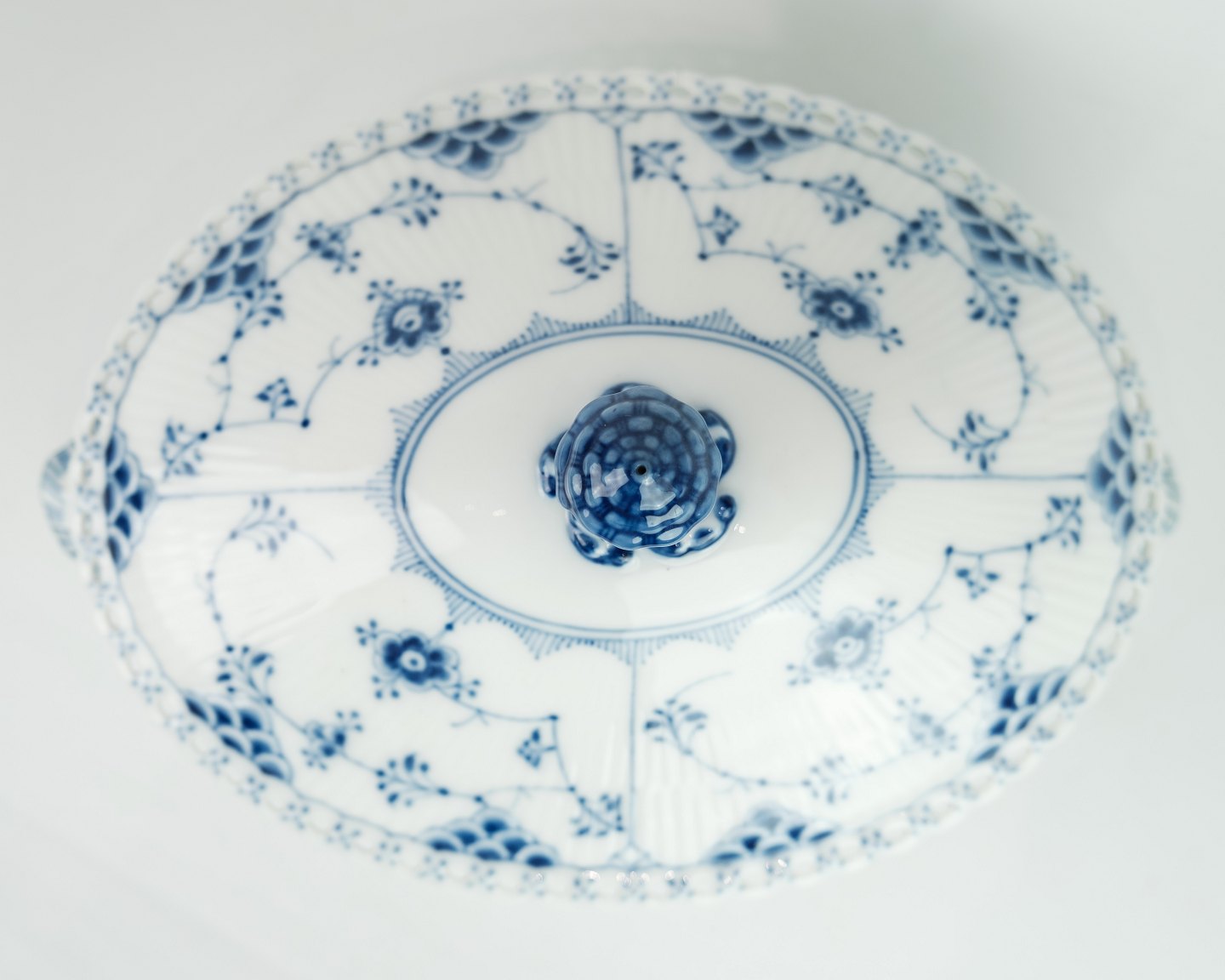 Royal Copenhagen Terrin i musselmalet hel blonde model nr. 1/1129. Står i meget fin brugt stand.
