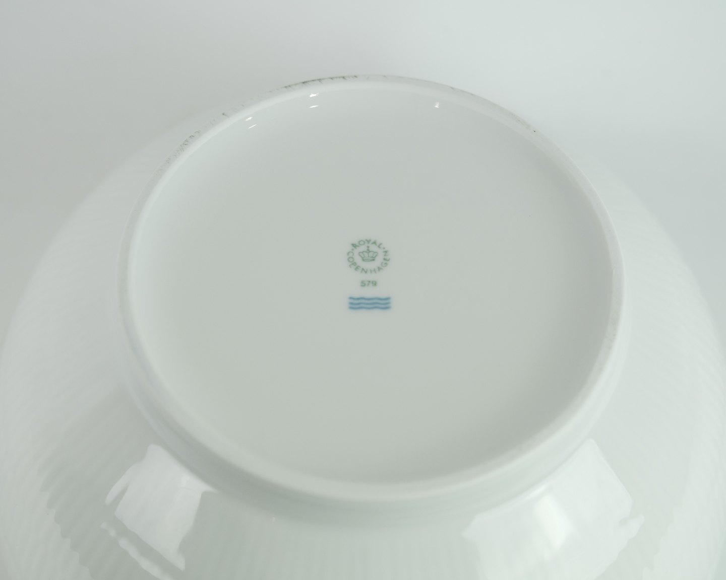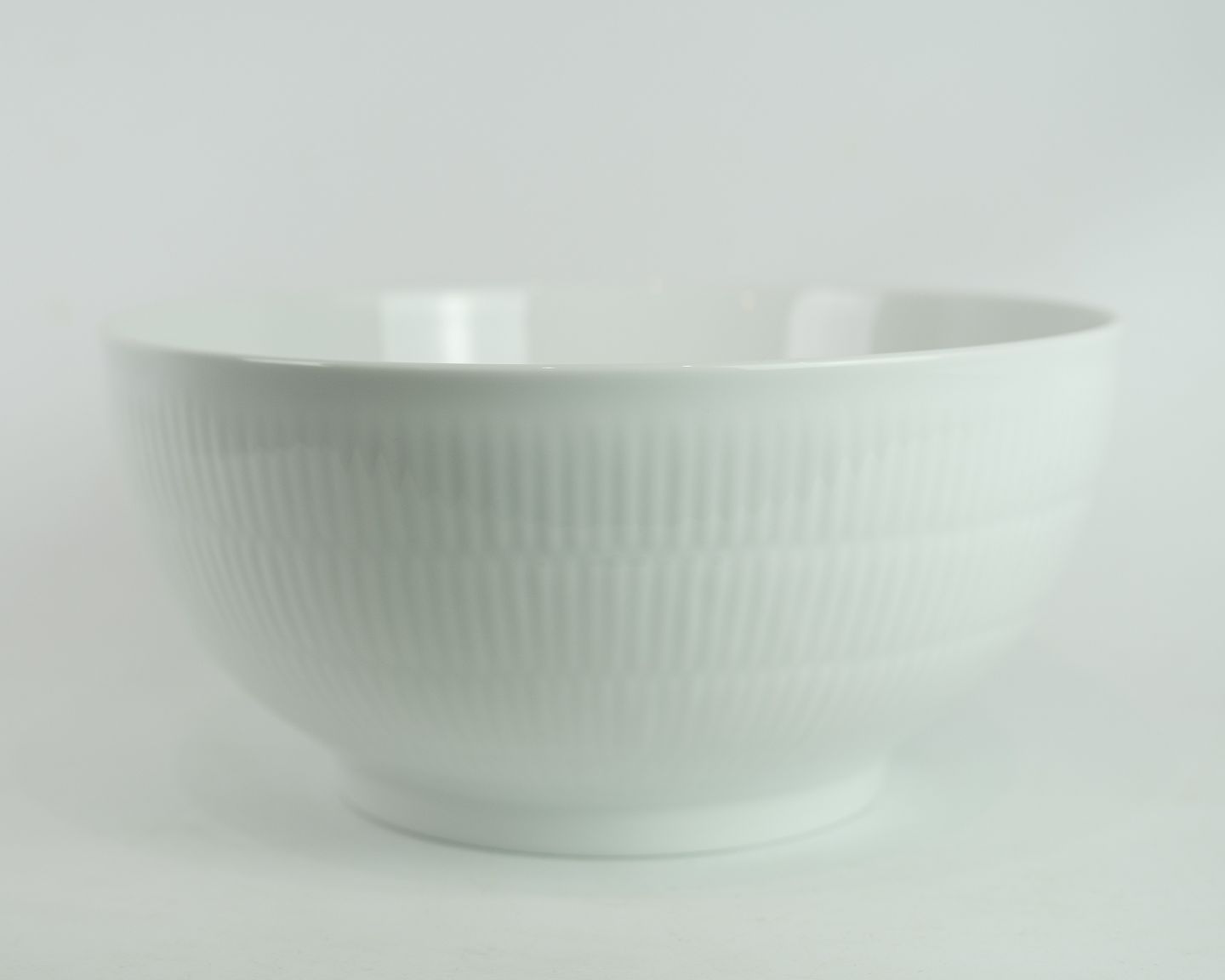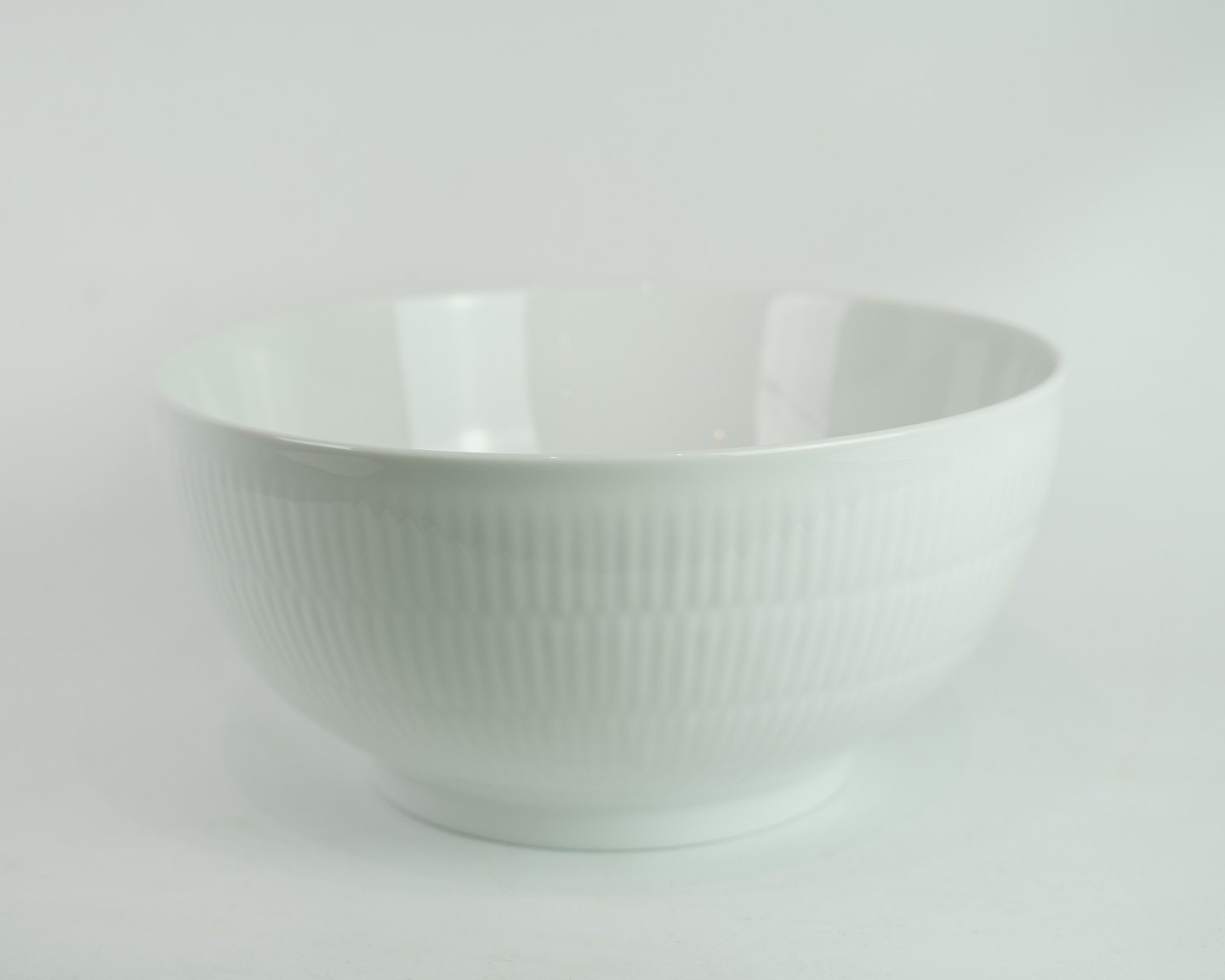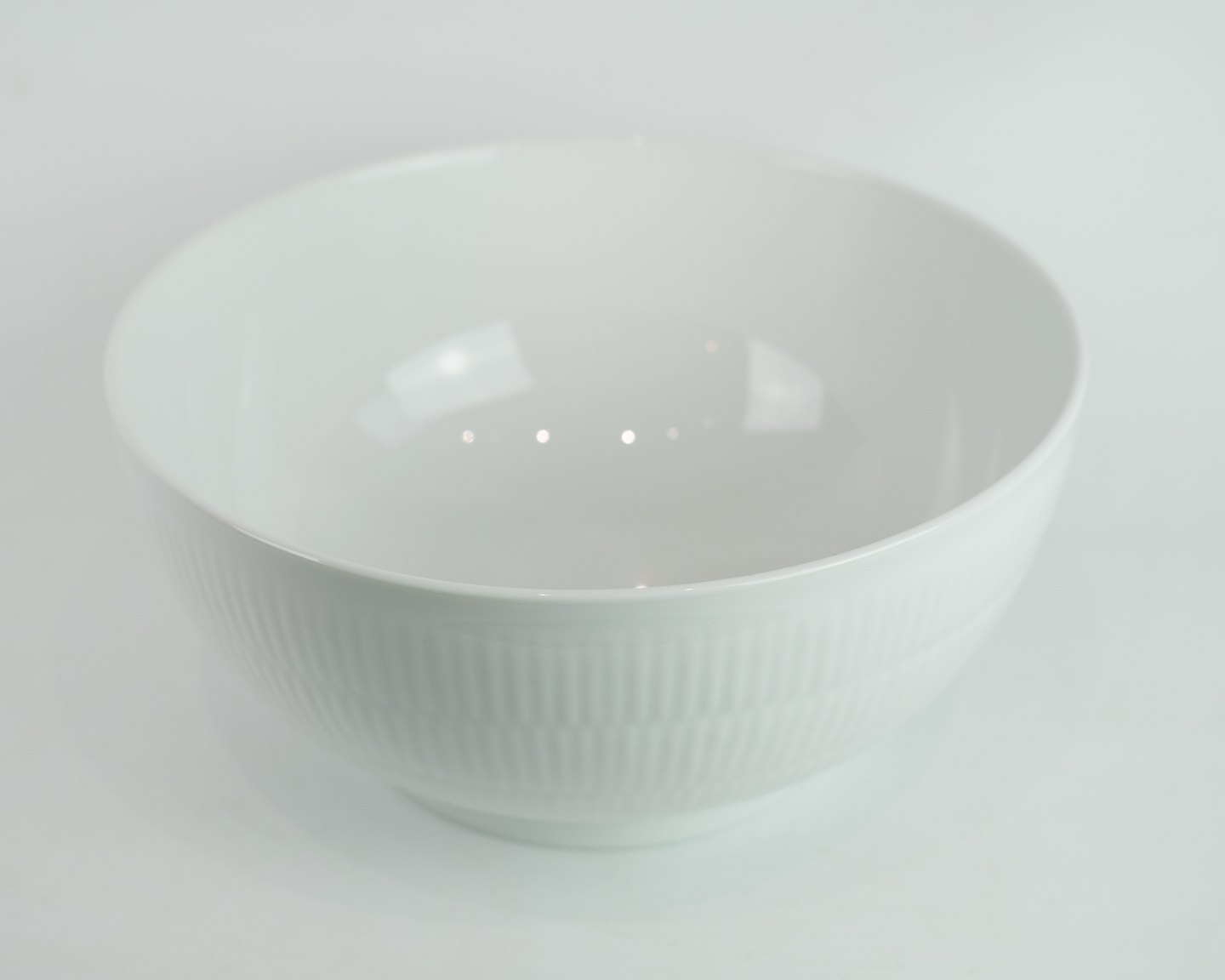 Royal Copenhagen hvid riflet skål, designet af Arnold krog. Denne serveringsskål er Ø24 og står i meget fin brugt stand.