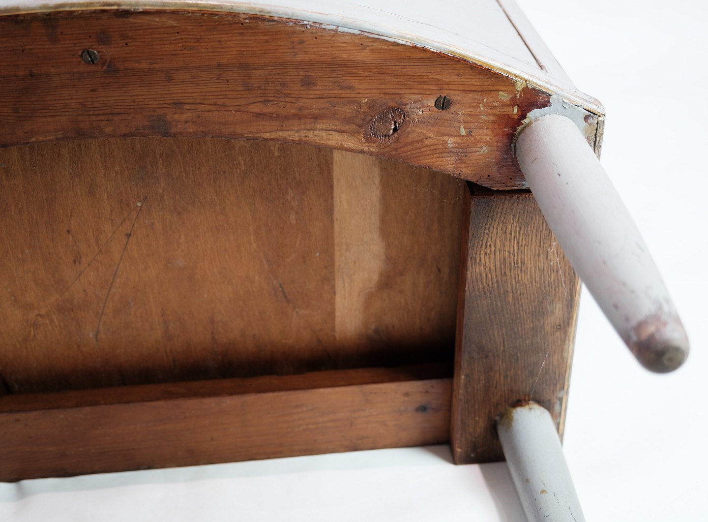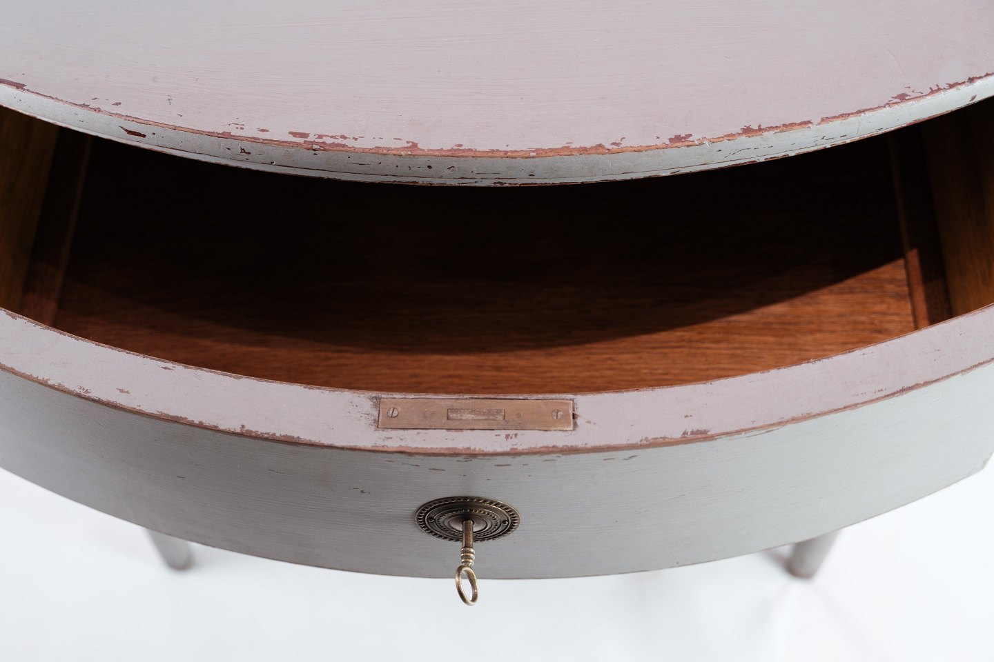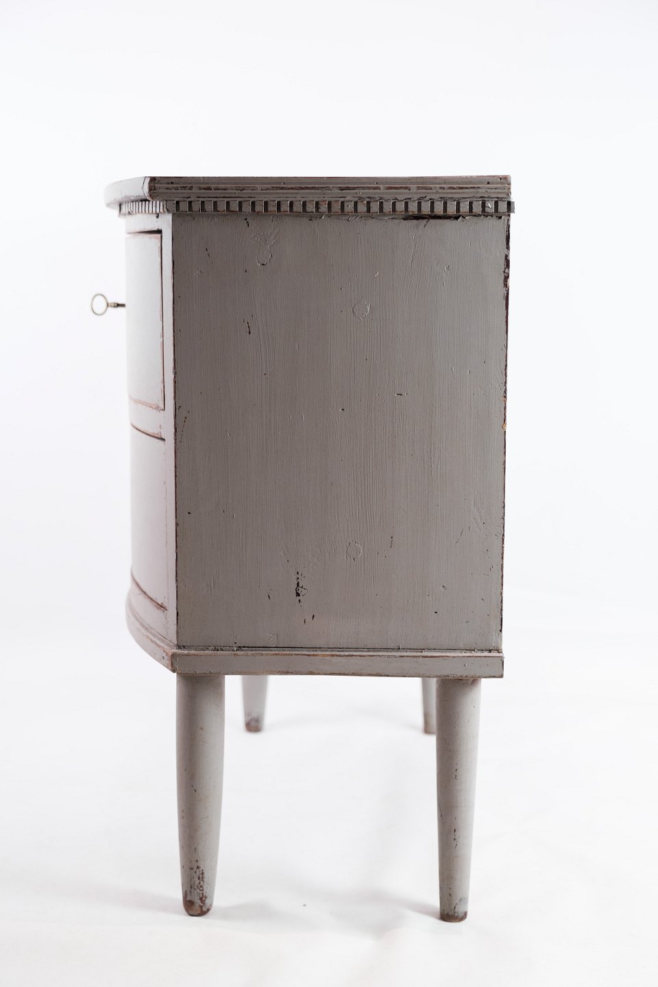 SoldGustavian chest of drawers with two drawers in gray painted from the year 1890s. The chest of drawers is called a Copenhagen chest of drawers, as it has a curved front. It is in very vintage good condition.
