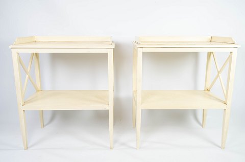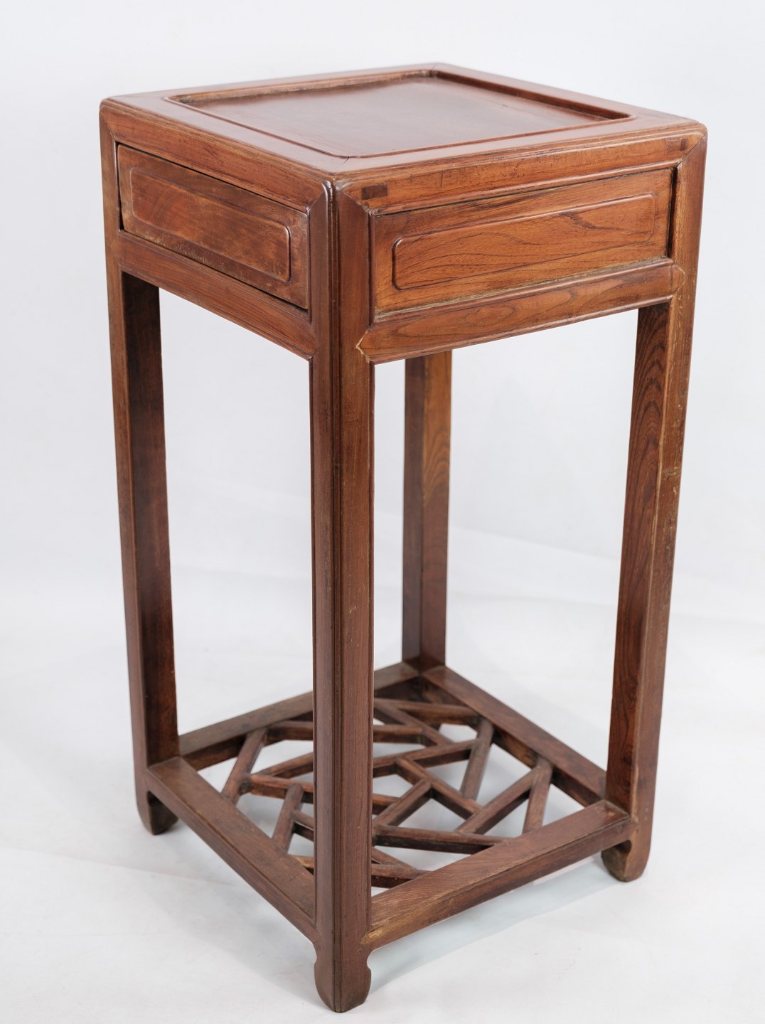 A set of Chinese side tables with drawer in polished dark wood from around the year 1880s. In really good condition.