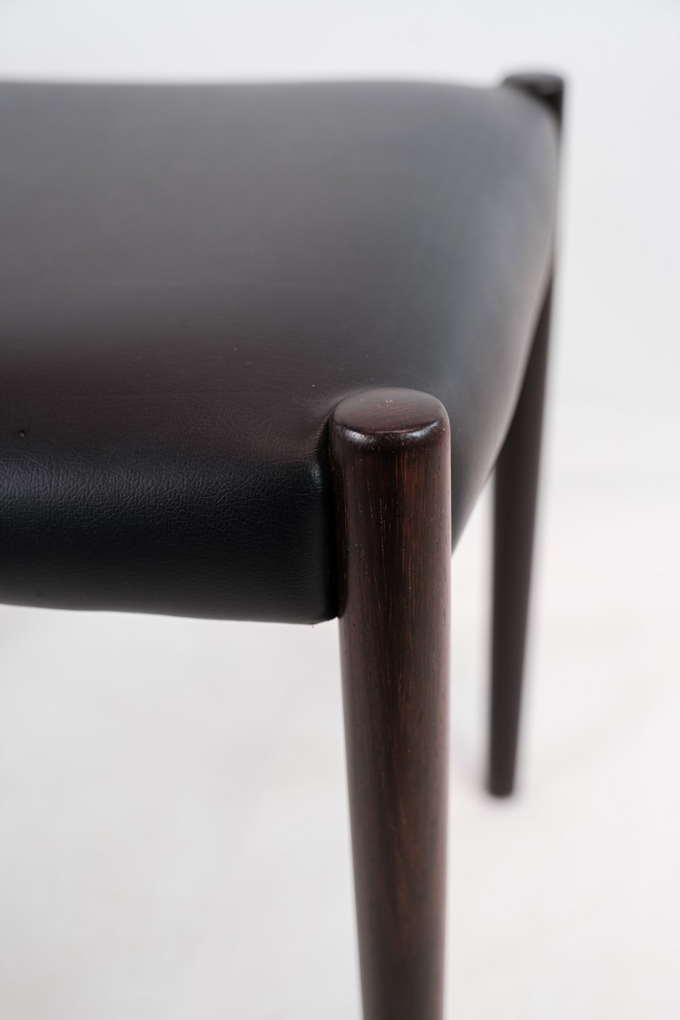 Dette sæt af to skamler er et smukt eksempel på dansk design fra 1960'erne. Skamlerne er fremstillet af palisandertræ, som giver dem en varm og naturlig farve med en smuk træstruktur. Den sorte læderpolstring tilføjer et elegant og tidløst touch til designet og sikrer samtidig komfort og holdbarhed.