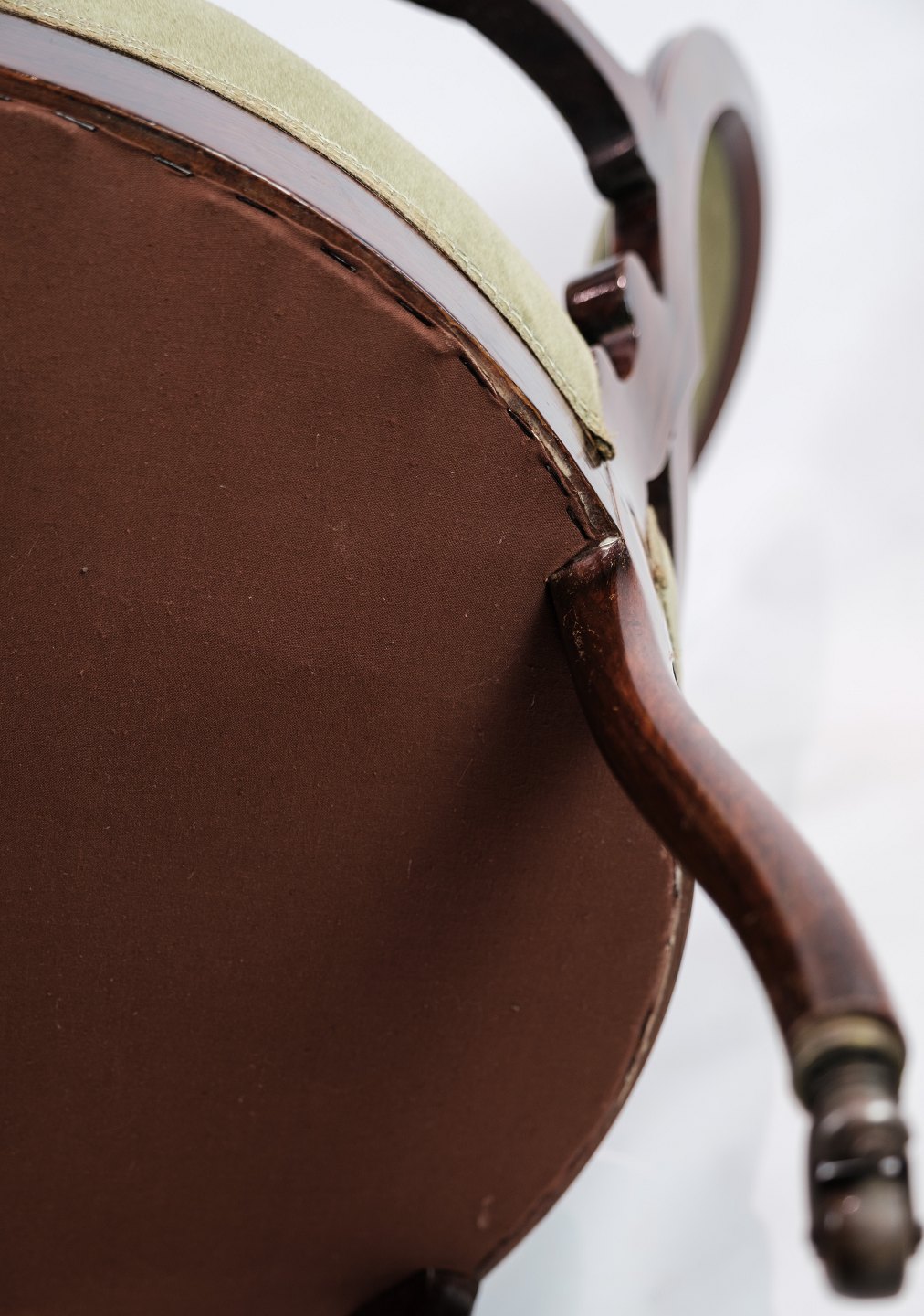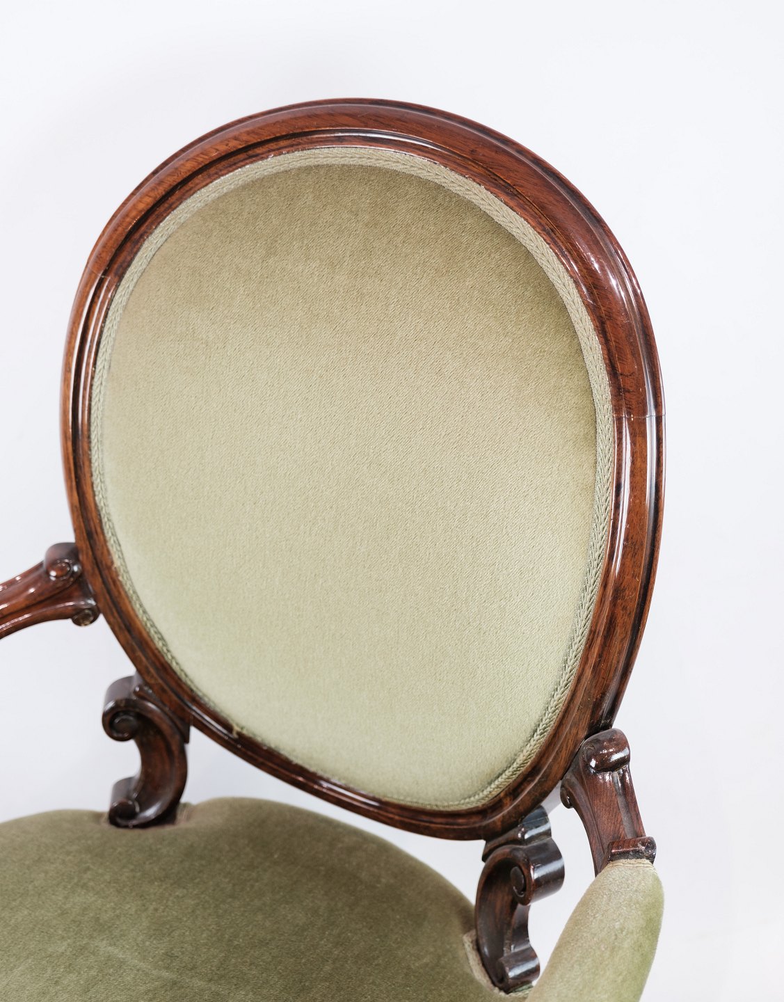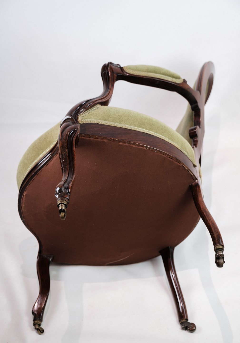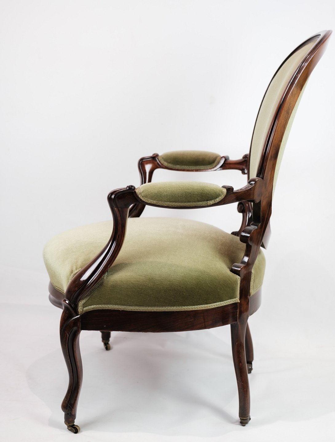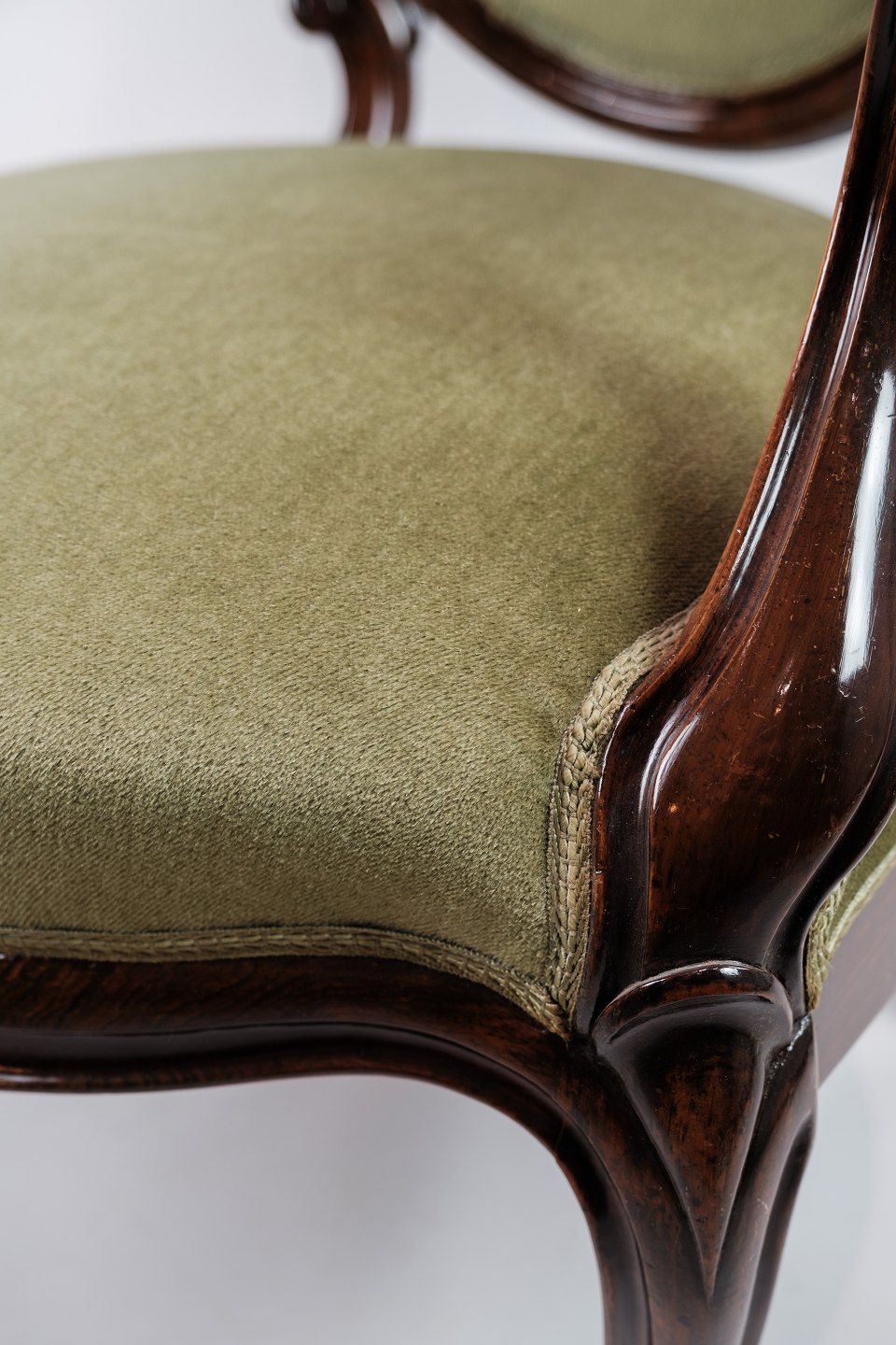 SoldA neo-rococo armchair in mahogany with brand green velor upholstery from around the 1880s. In very good condition.