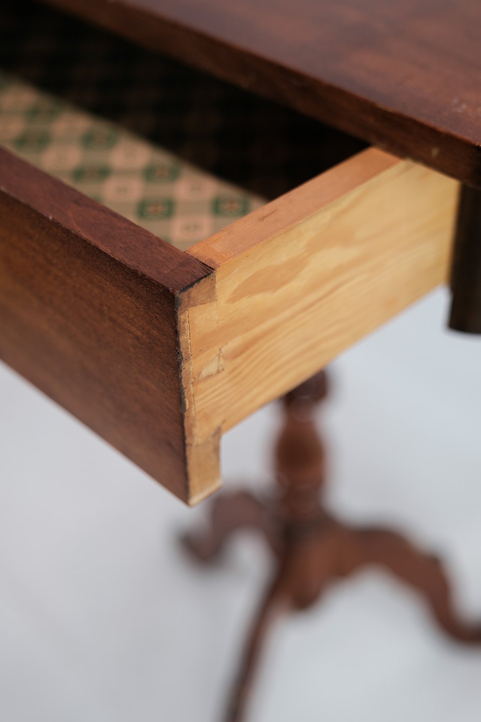 Et sidebord på søjle i mahogni fra omkring år 1850'erne.