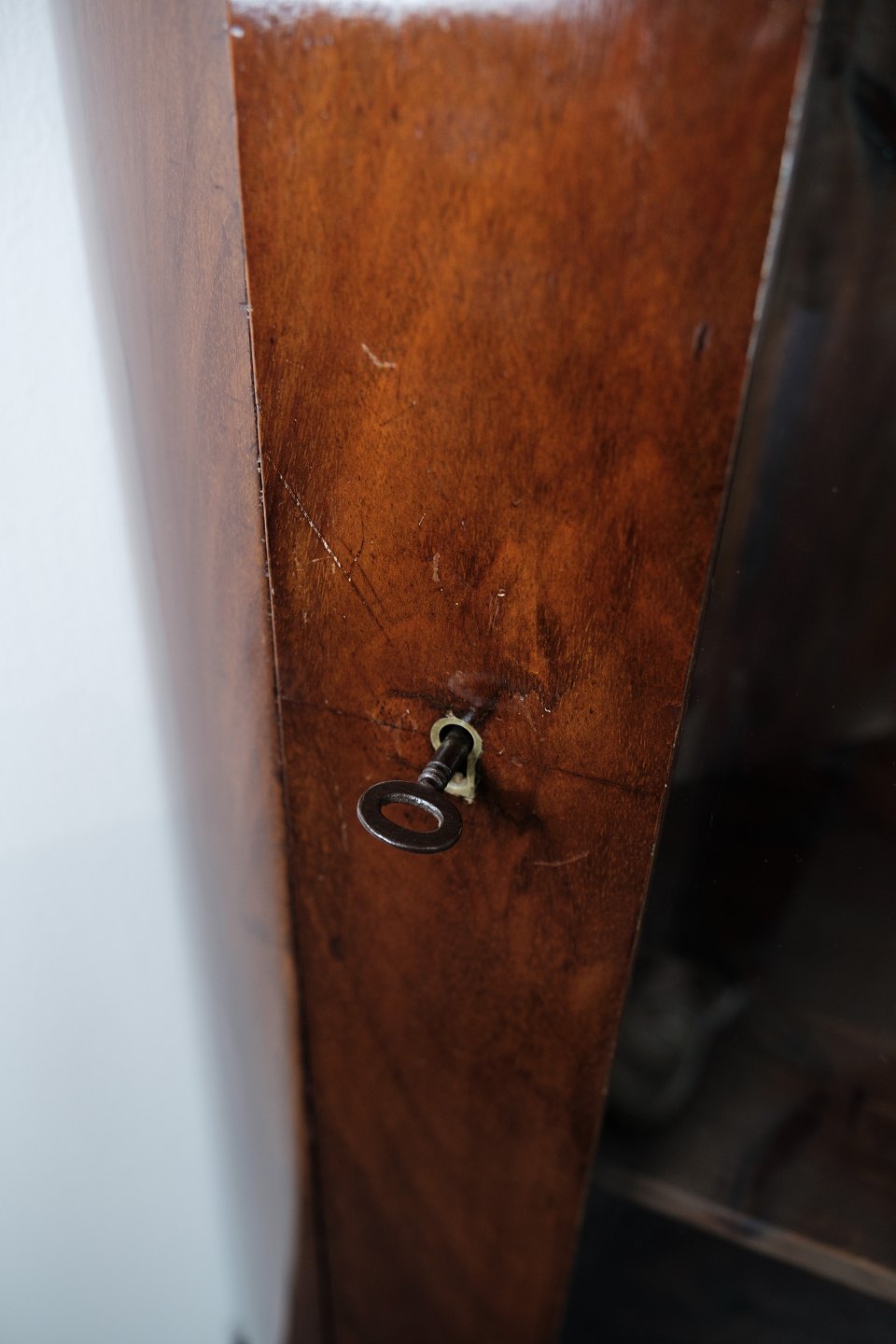 Skabet står i meget fin stand, hvilket vidner om dets værdi og omhu gennem årene. Den smukke patina og finish på mahognien giver skabet en tidløs æstetik, der vil blive værdsat i mange år fremover.