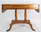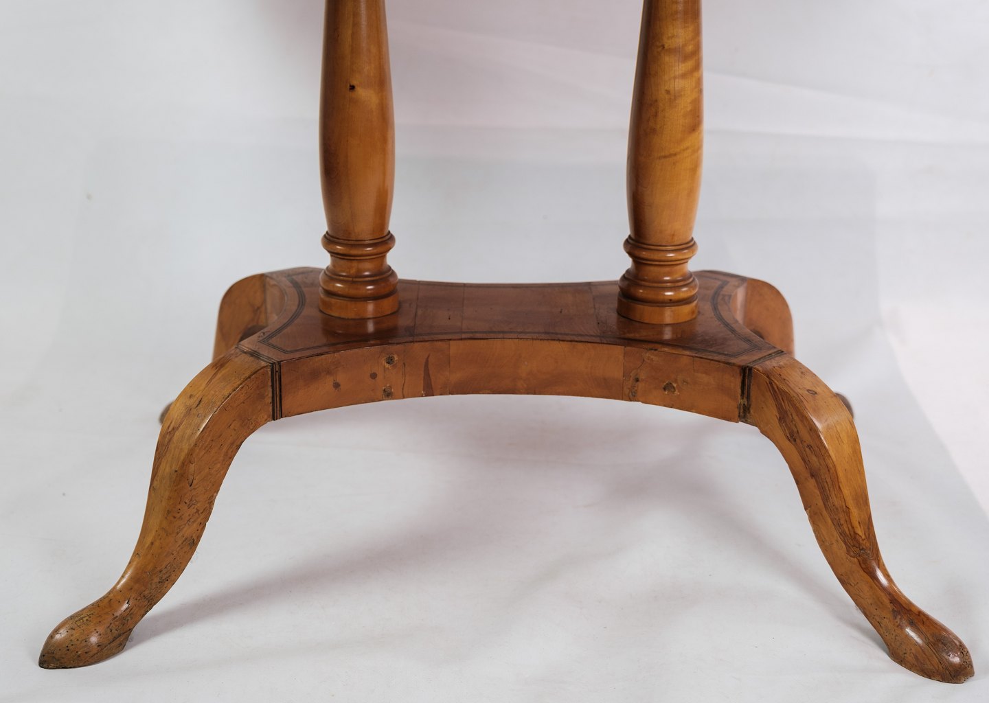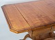 The Empire dining table, an antique piece featuring intricate intarsia work, crafted from birch wood and originating from Denmark in 1840, is a remarkable testament to the craftsmanship and grandeur of the Empire era.