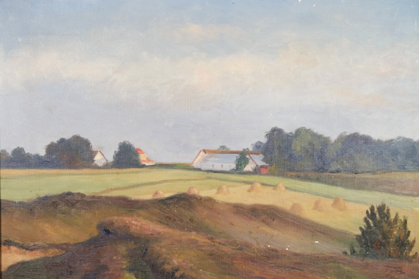 Oil painting on canvas with motif of agriculture and nature from around 1930. Signed Søndergaard