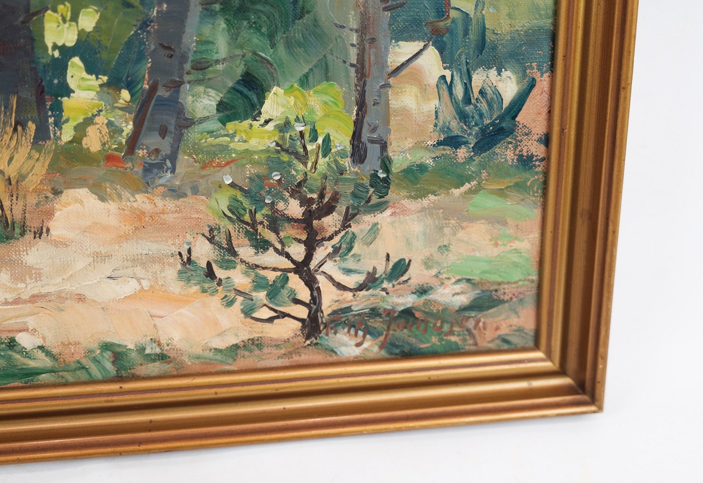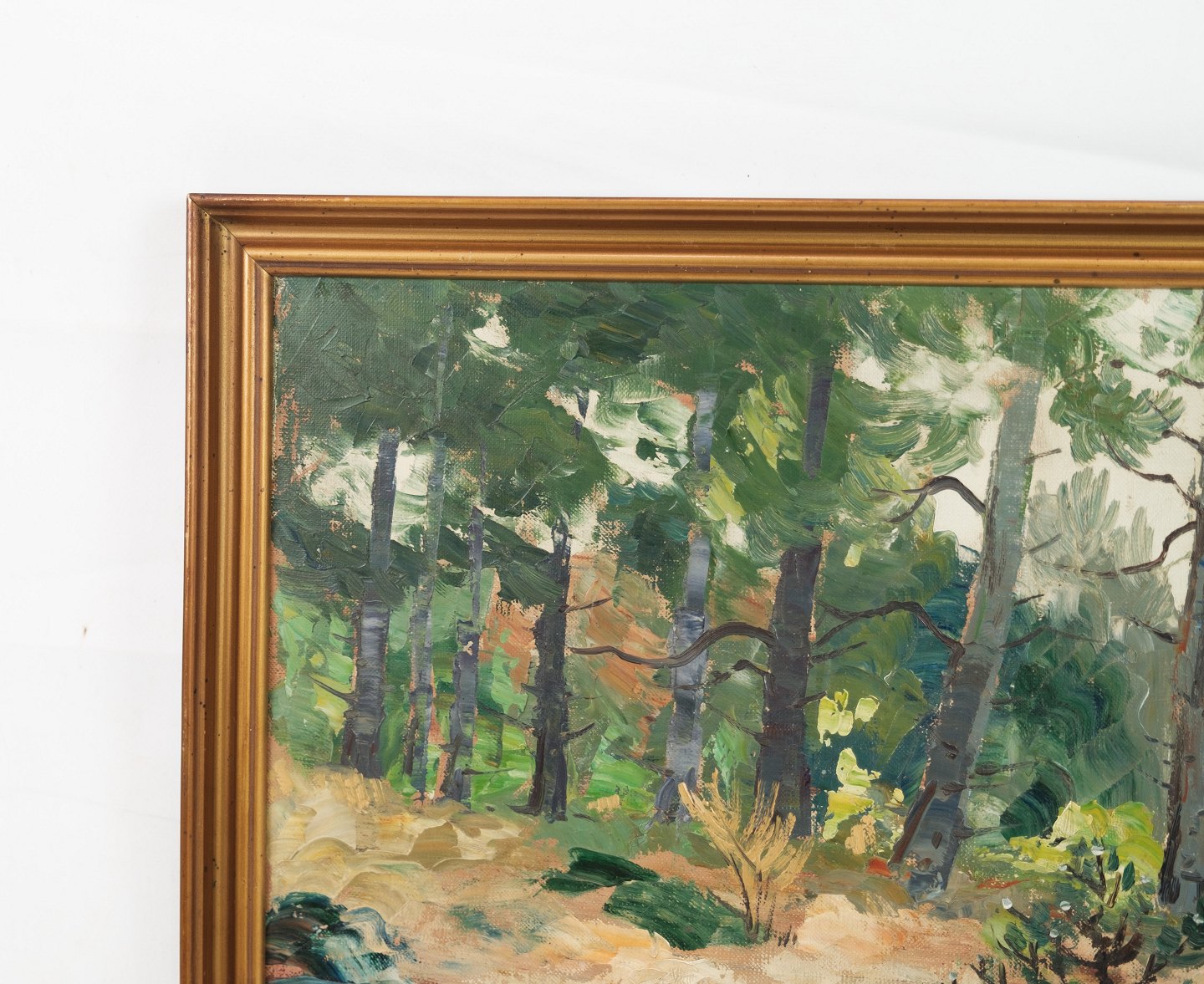 Oliemaleri lavet på lærredet med motiv af skov / træer fra omkring år 1940'erne. Står i meget fin brugt stand.