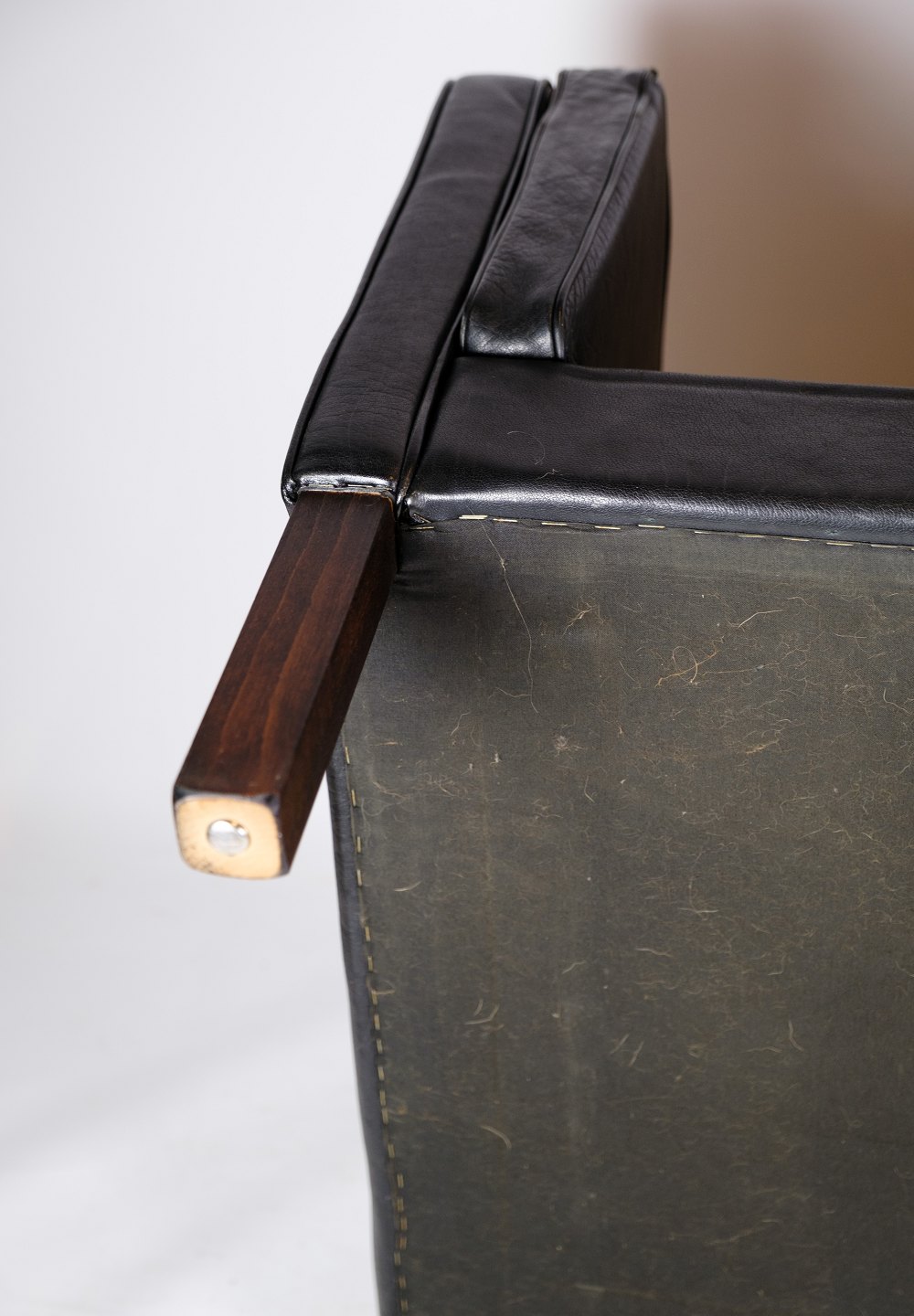 This two-seater sofa was manufactured by Stouby Møbelfabrik in the 1960s and is upholstered in high-quality black leather. The sofa has a beautiful natural patina and loose cushions and armrests that give it a unique and stylish look. This sofa is a perfect choice for those who appreciate good design and high quality.