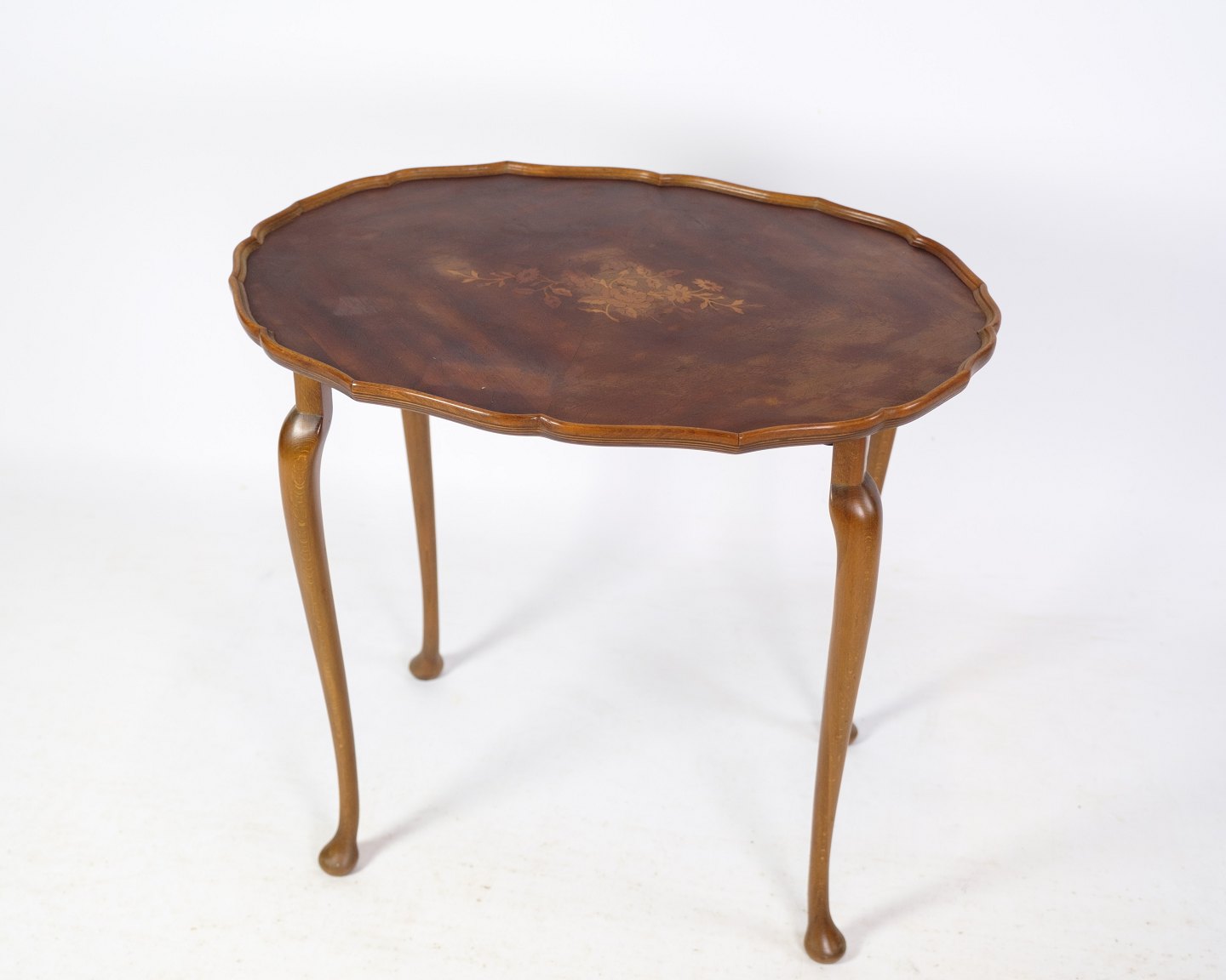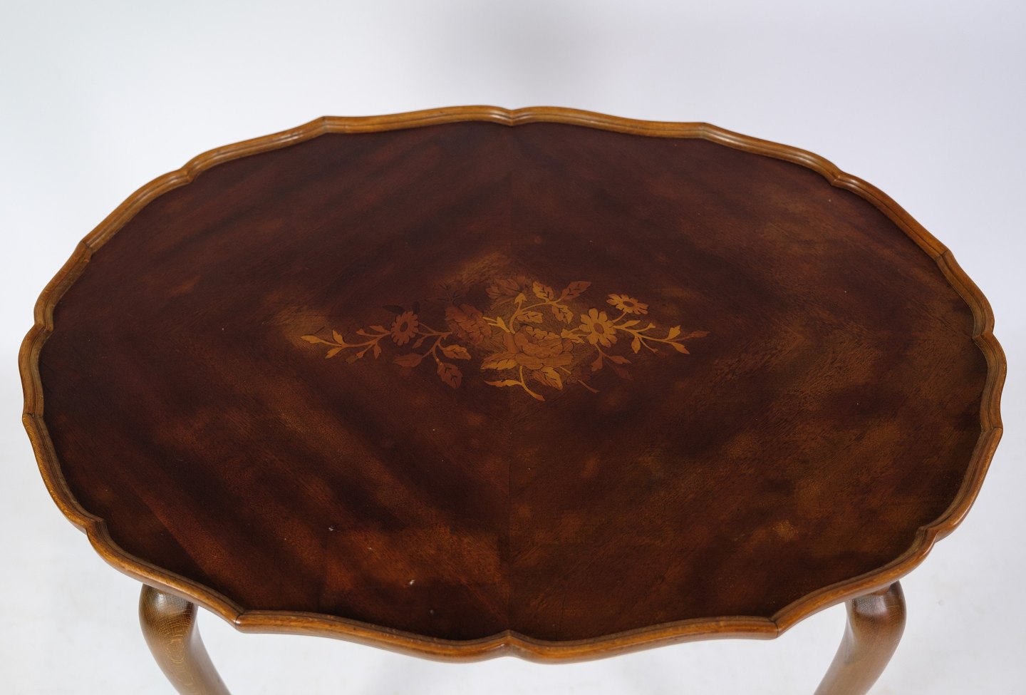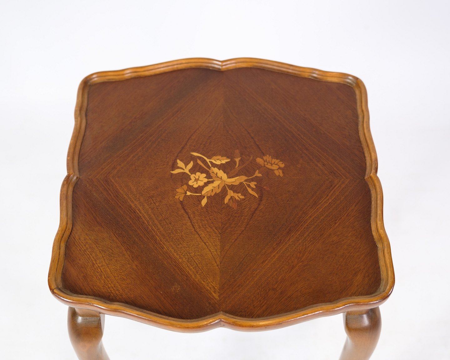 Set of 3 insert tables with neo-rococo-style marquetry from around the 1960s.