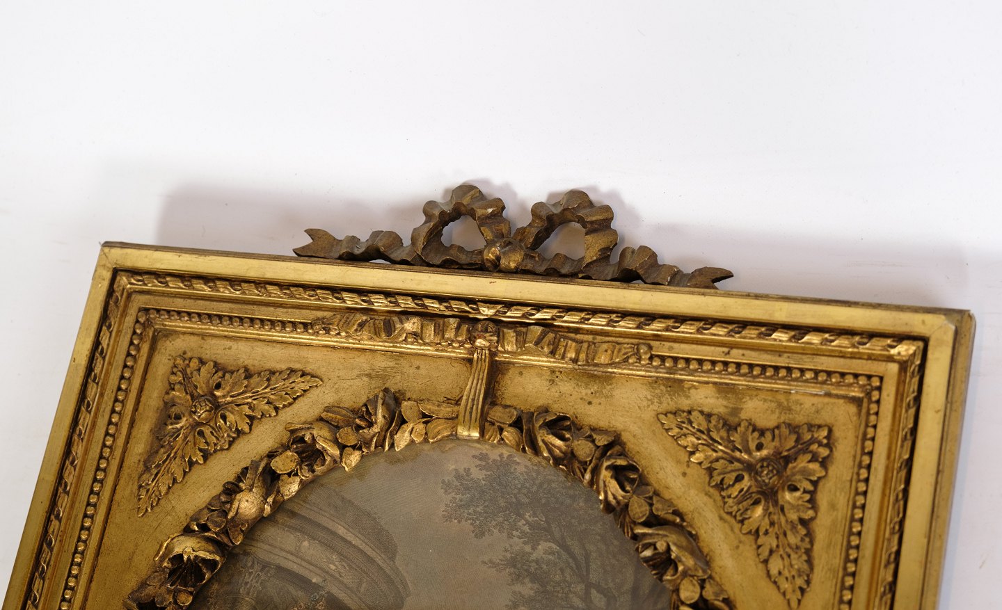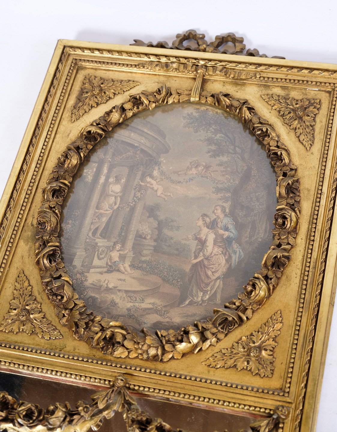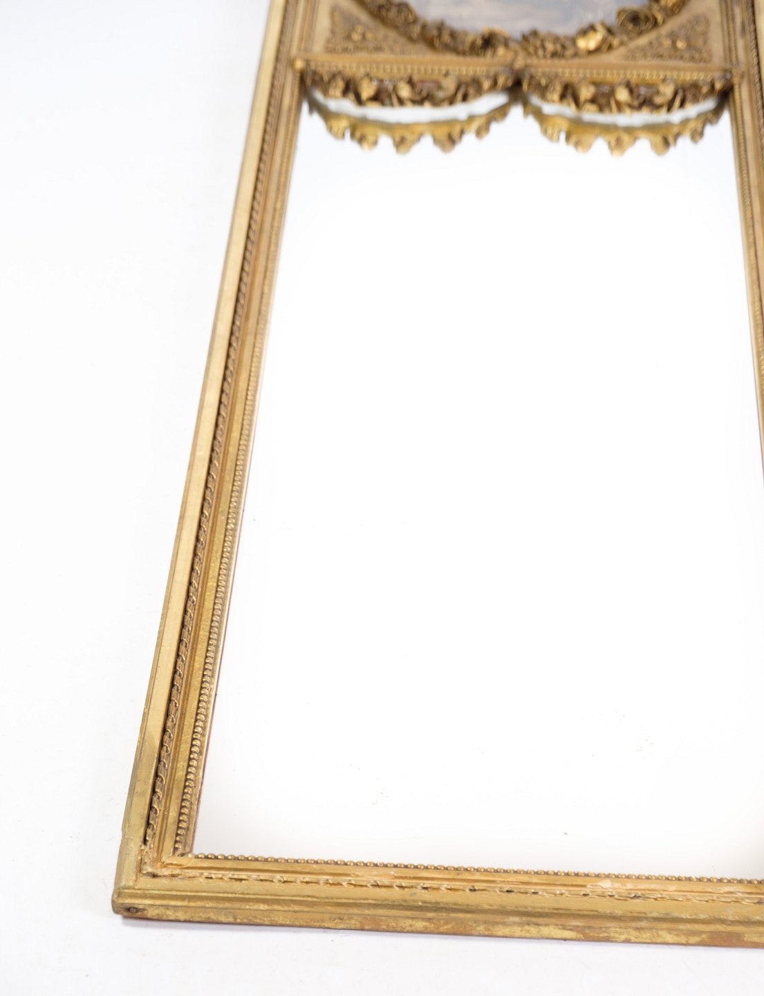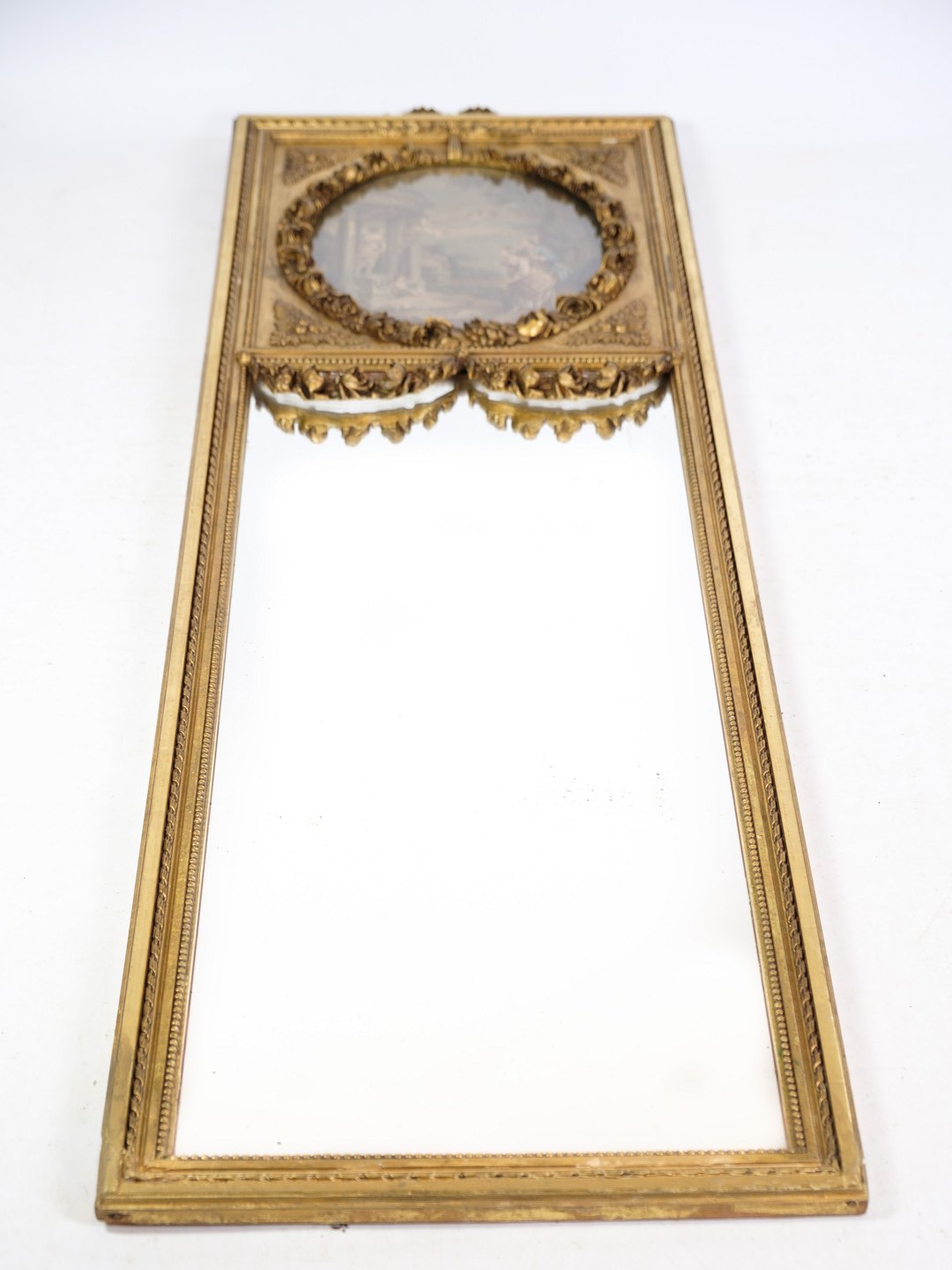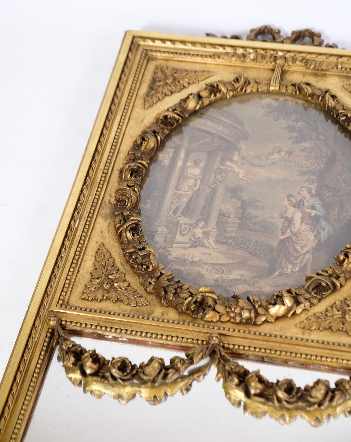 Louis Seize mirror with gilding / gold leaf with motif in the top from the year 1790s.