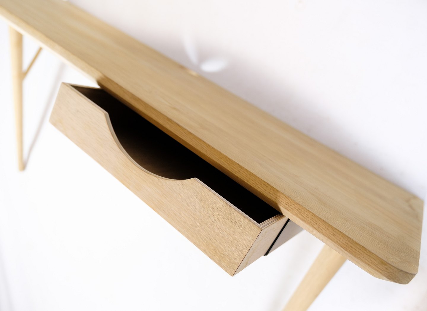 SolgtVæghængt skrivebord i dansk design af egetræ fremstillet af snedkergaarden fra omkring 1990'erne.
