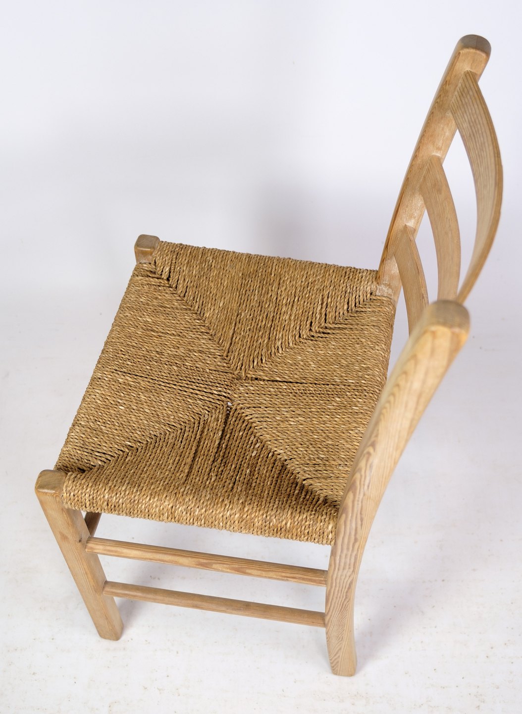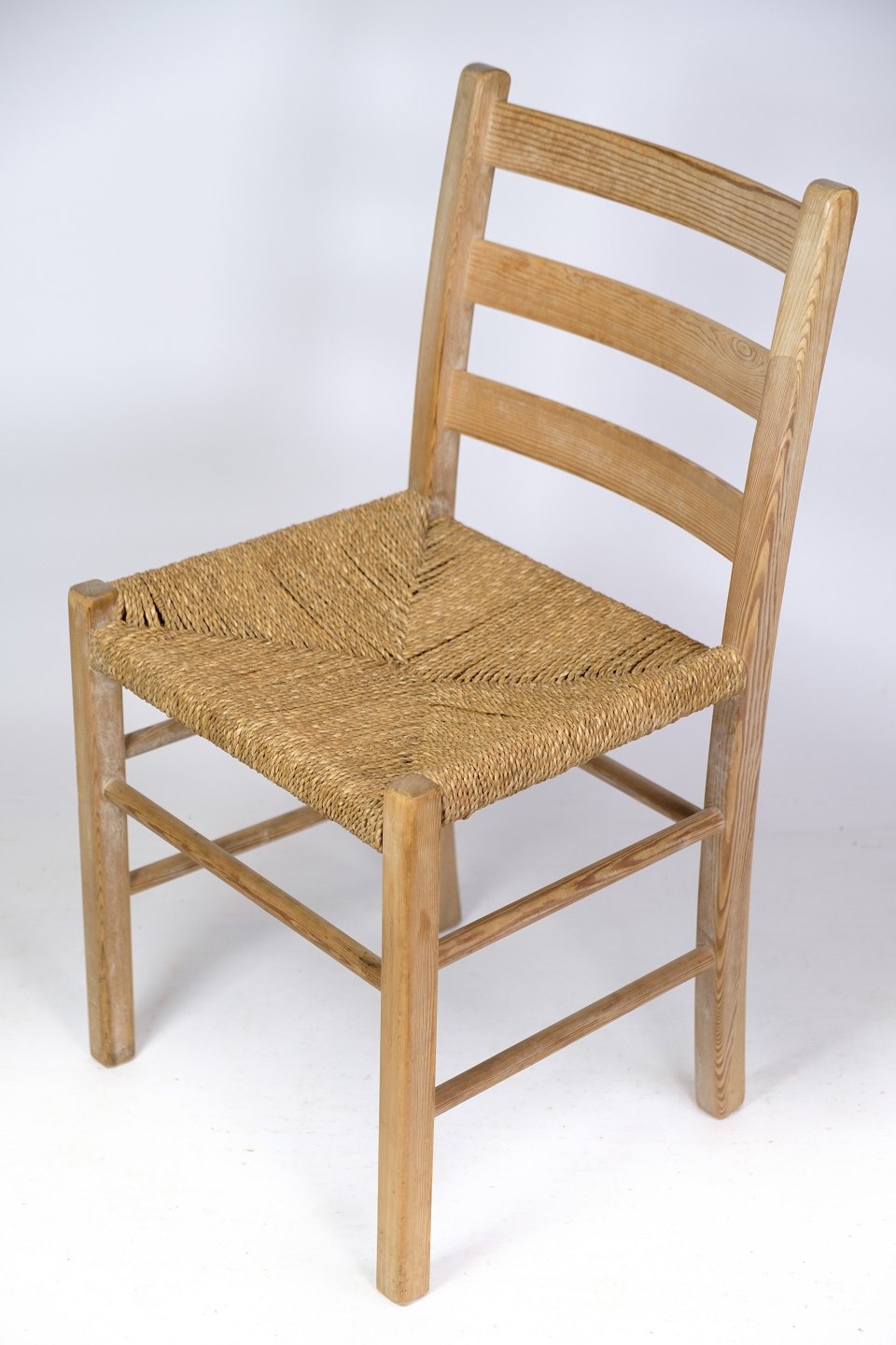 SoldA set of 6 chairs in pine wood with wicker seat from around the 1970s