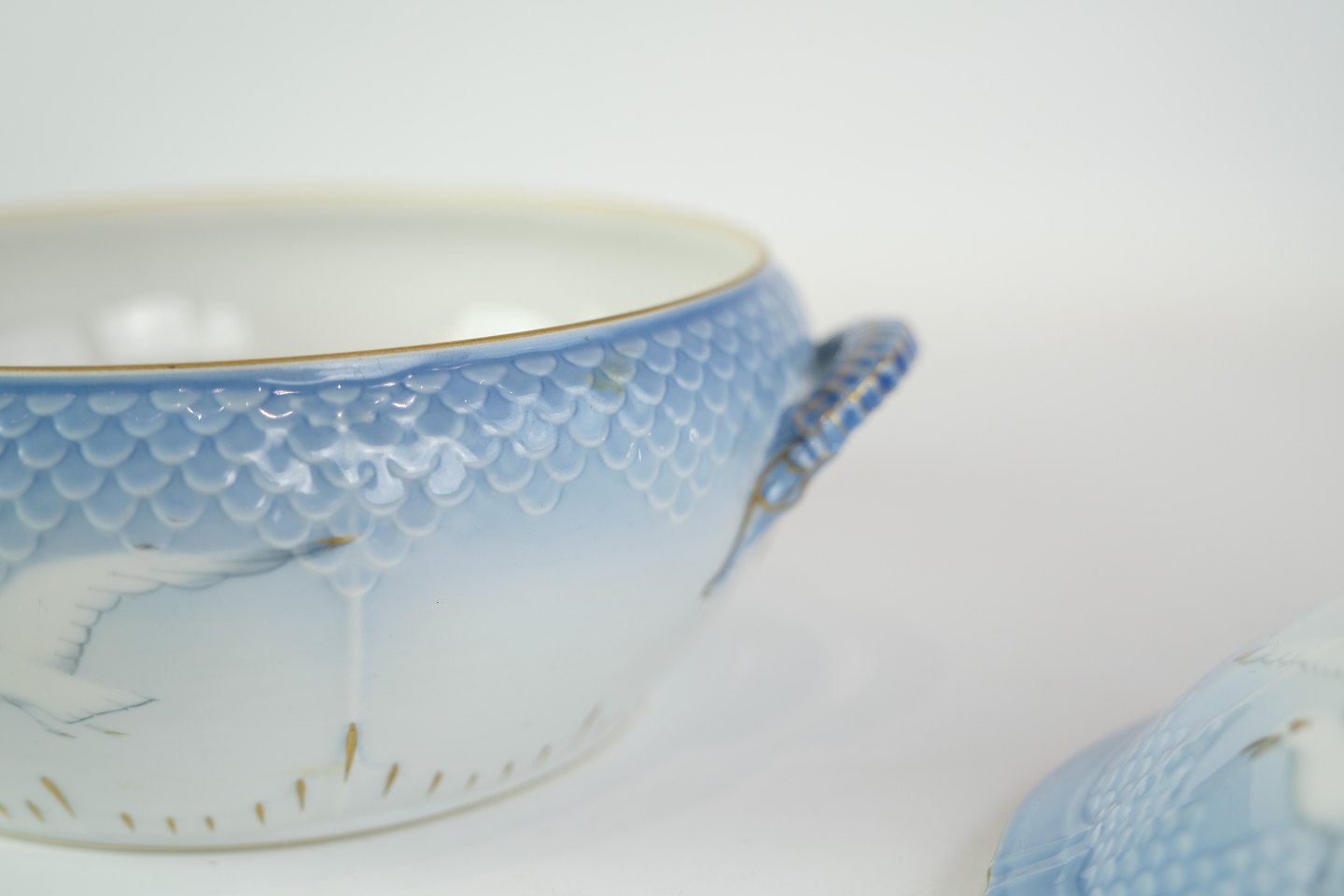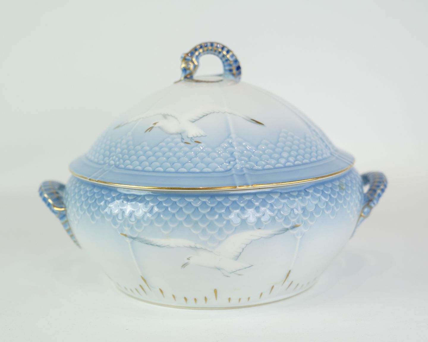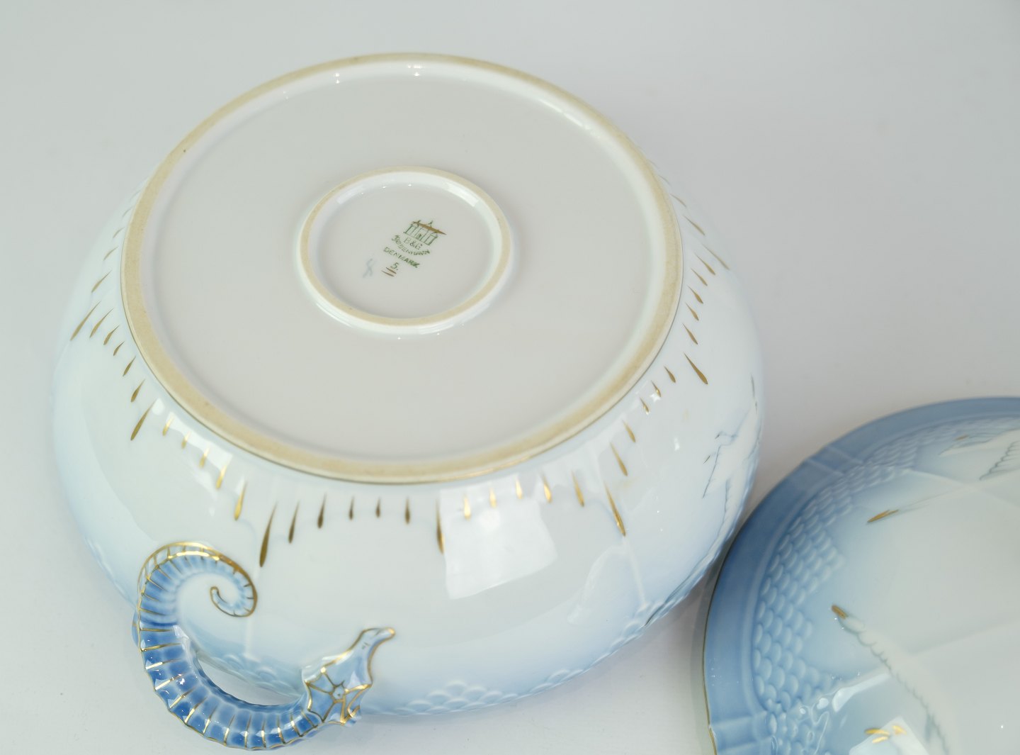 SoldRound tureen from Bing & Grondahl in seagull frame with golden edge.