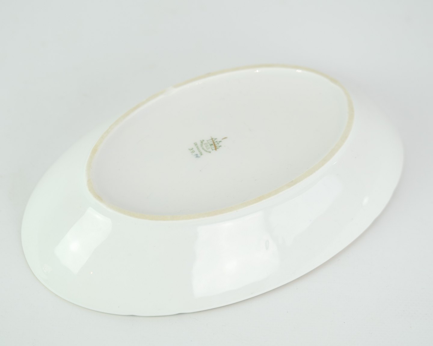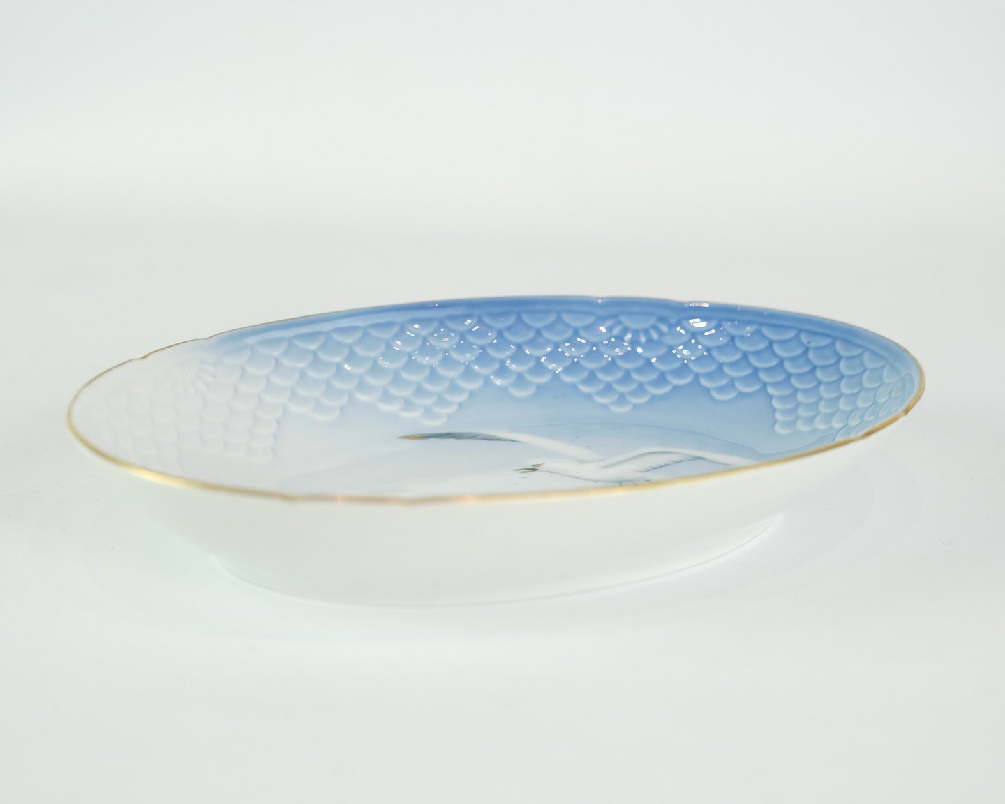 Oval skål fra Bing og Grøndahl med høj kant i mågestel med guldkant no. 39
