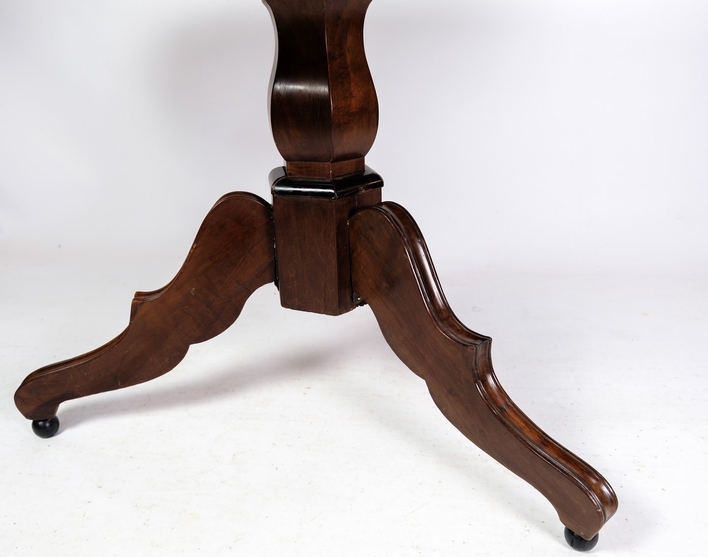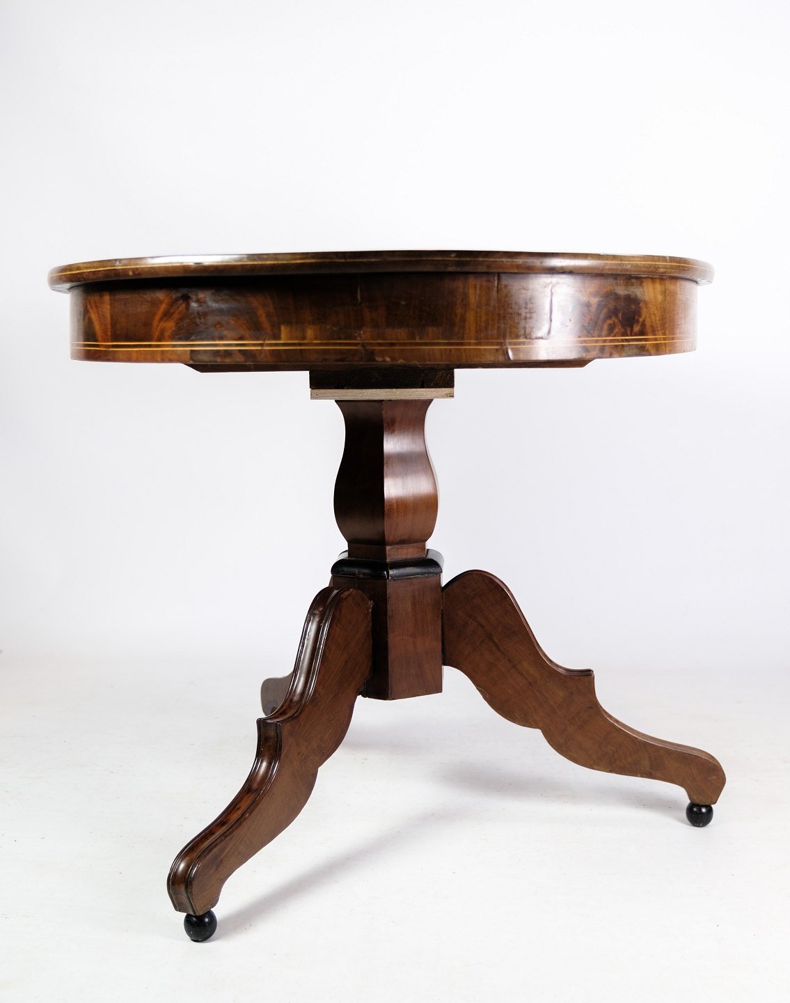 Dining table on a mahogany pillar with marquetry from the late Empire period from around the year 1840s
