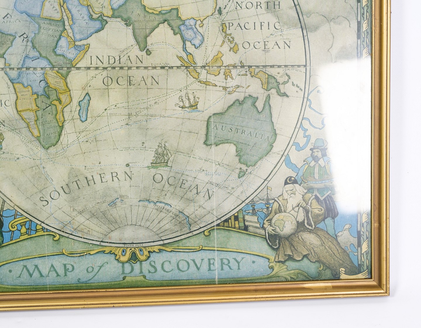 A map of the eastern hemisphere entitled "Map of discovery" from around the 1920s.