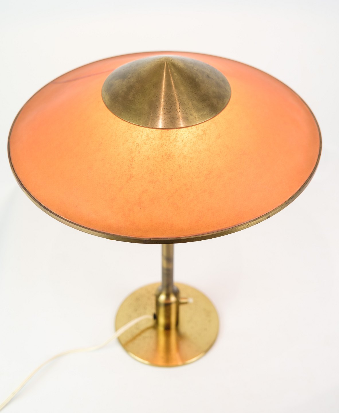 SoldRoyal candle table lamp by Fog and Mørup of amber colored shade plastic and burnished brass. Originally called T3 Minor designed by Niels Rasmussen Thykier in 1930, in 1937 it was taken over by Fog Og Mørup and renamed Royal Candles. The lamp is in very good condition.