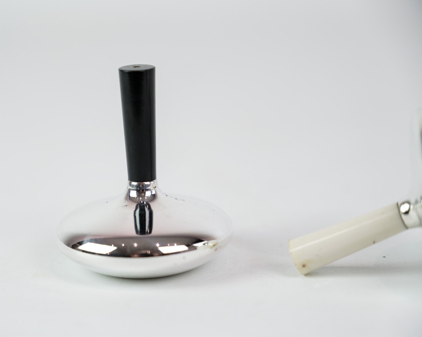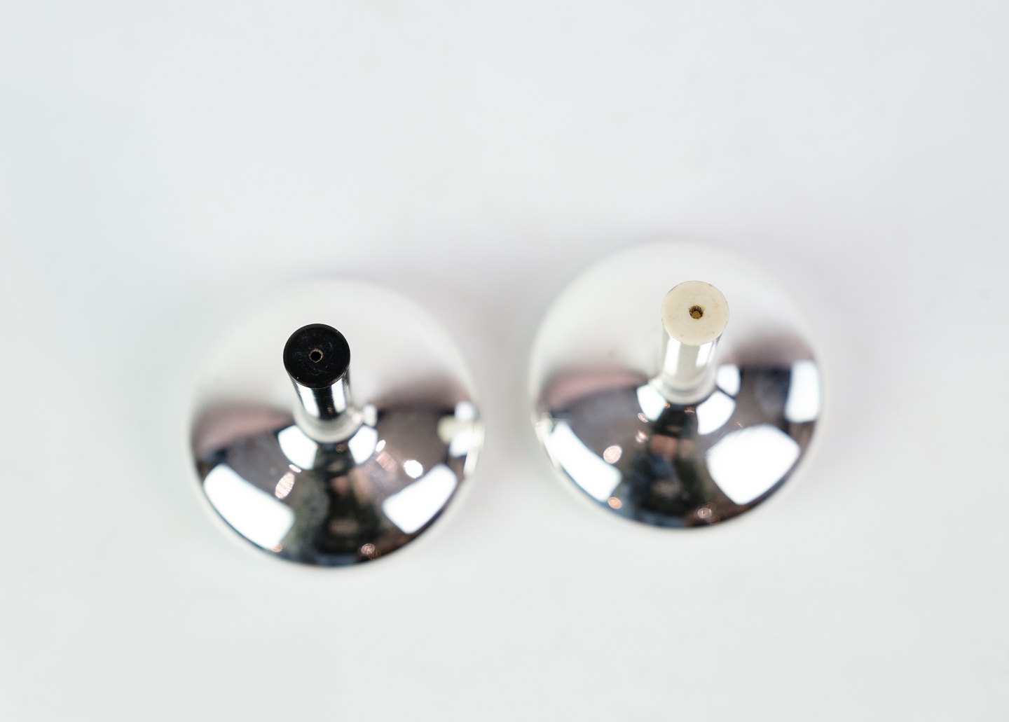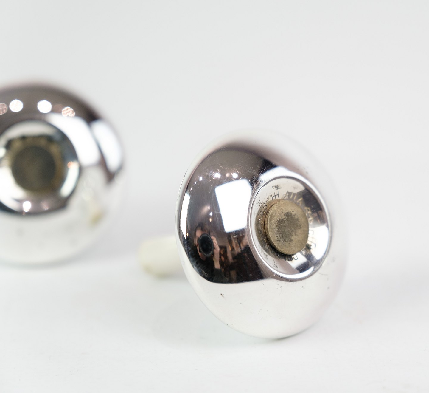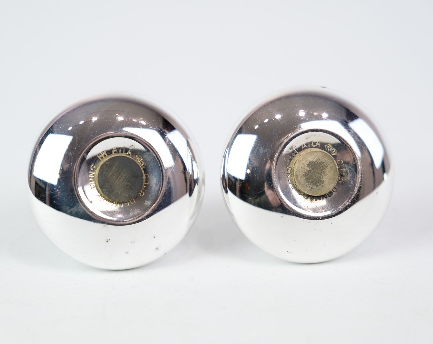 Salt og peber sæt, af dansk design i sølvplet, signeret "Danmark EPNS HH ATLA COHR". Sættet står intakt med original prop.