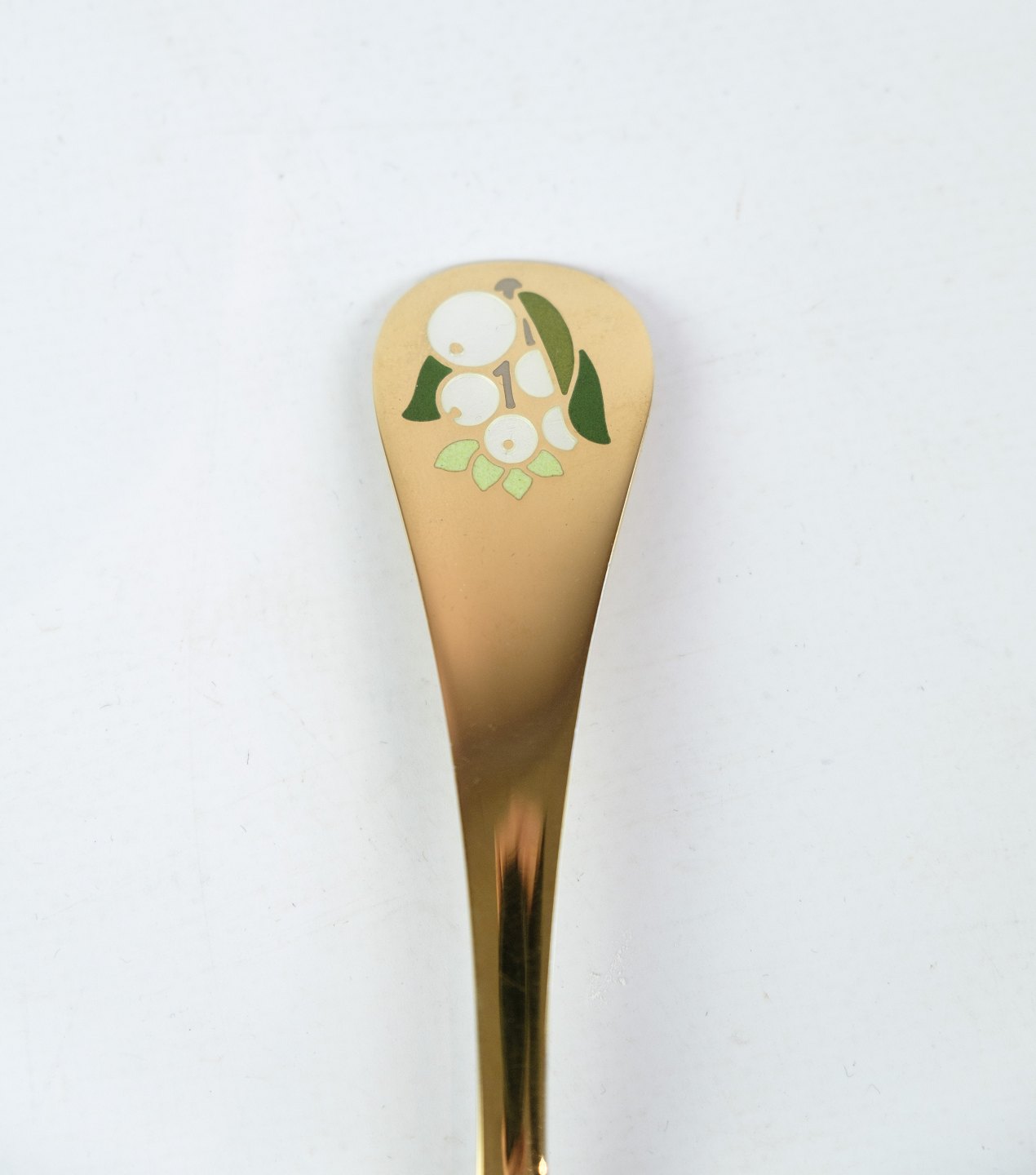 SolgtGeorg Jensen årsske fra 2000, designet af Annelise Bjørner med motivet "Snebær" i forgyldt sterling sølv.