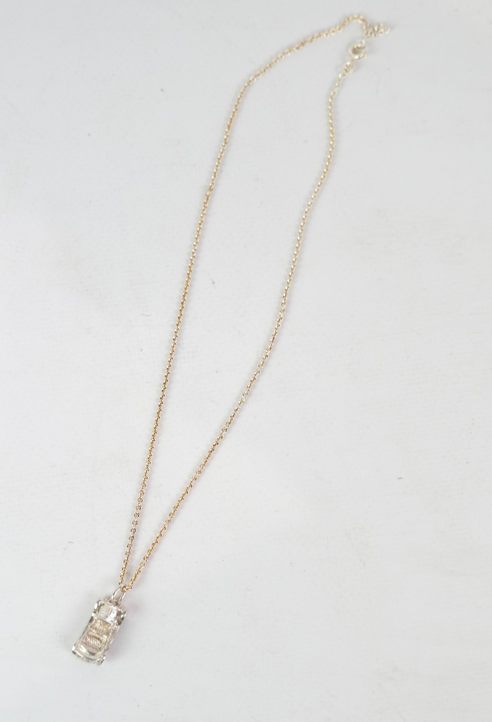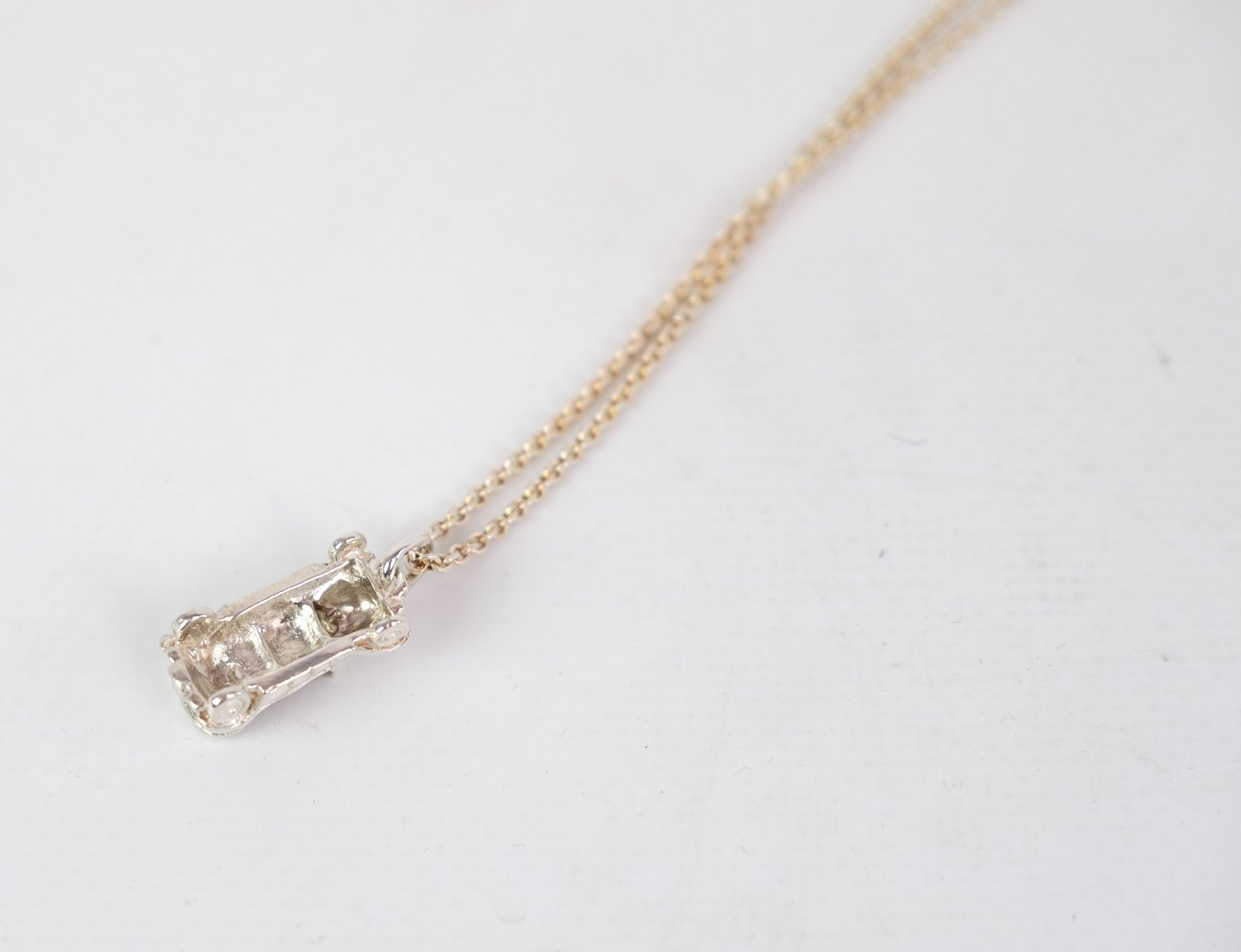 Vedhæng i 925 sølv, med motiv af en bil. Halskæden kan tilkøbes for 1950 DKK, som er 14 karat guld. Fås også i sølv. Kontakt venligst for dette.