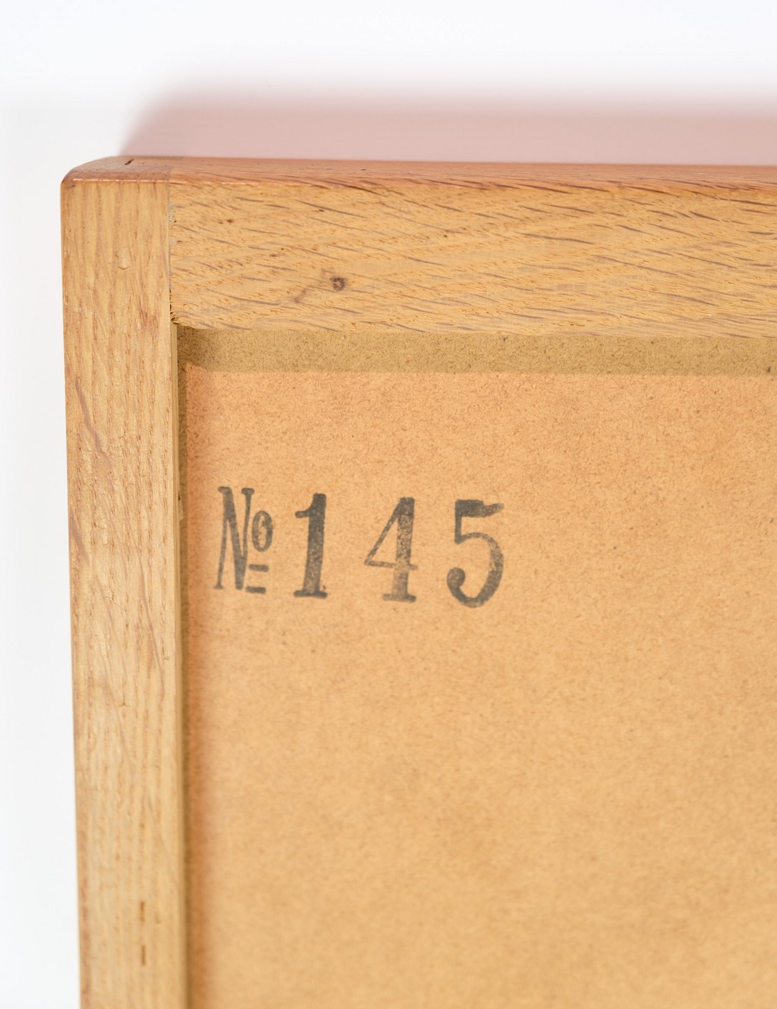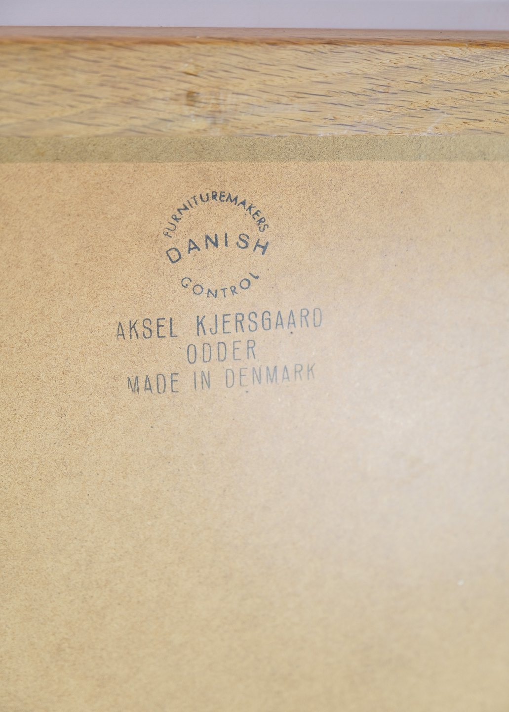 Aflangt spejl i egetræ, designet af Aksel Kjaersgaard hos Odder møbler fra 1960'erne.