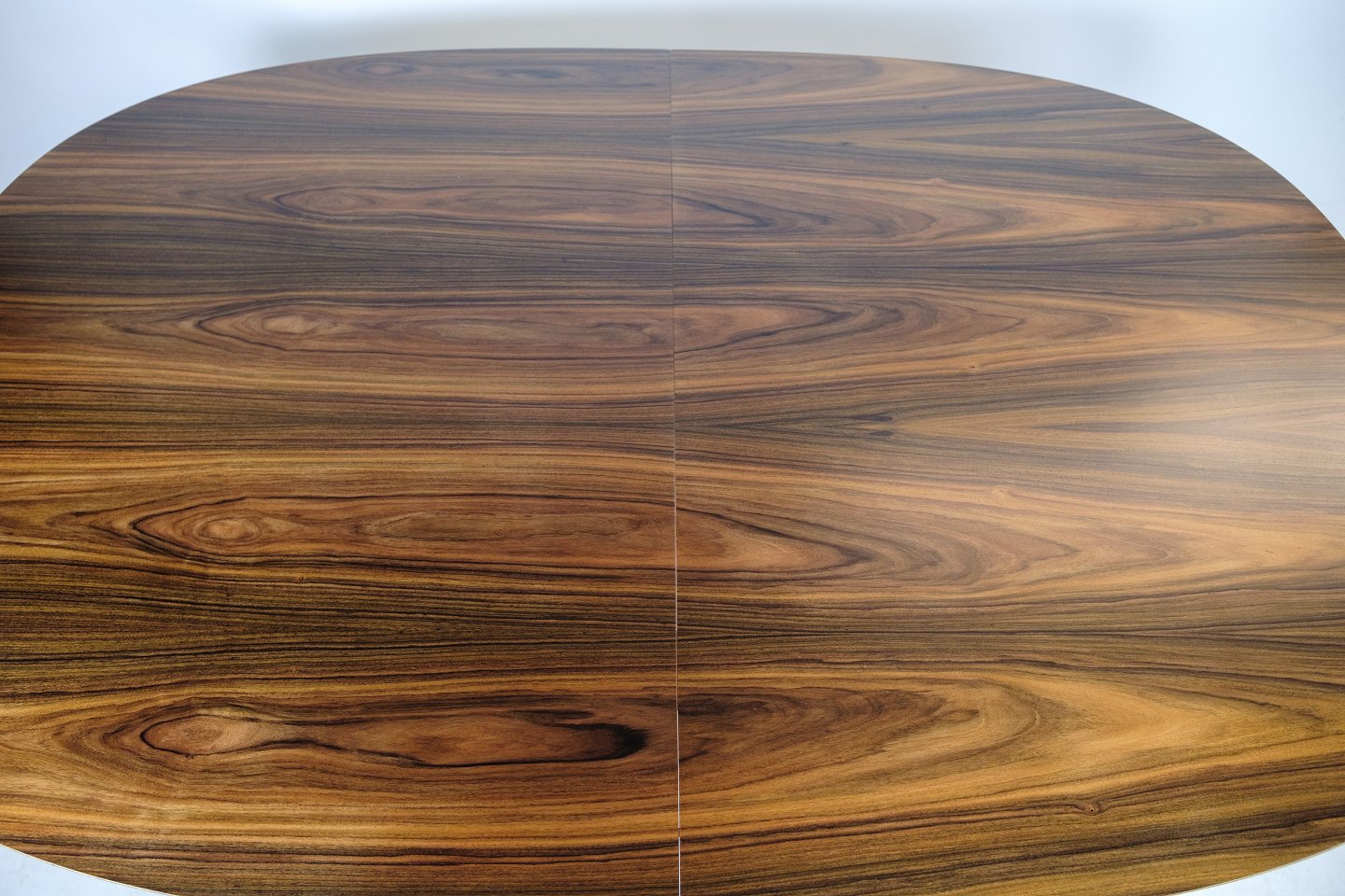 SoldDining table, designed by Piet Hein & Bruno Mathsson with rosewood veneer and steel legs produced by Fritz Hansen. The table is from the 1960s and is in incredibly nice condition.